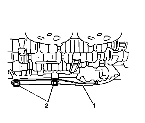 13. Remove the manual shift shaft detent spring (1) and bolts (2).