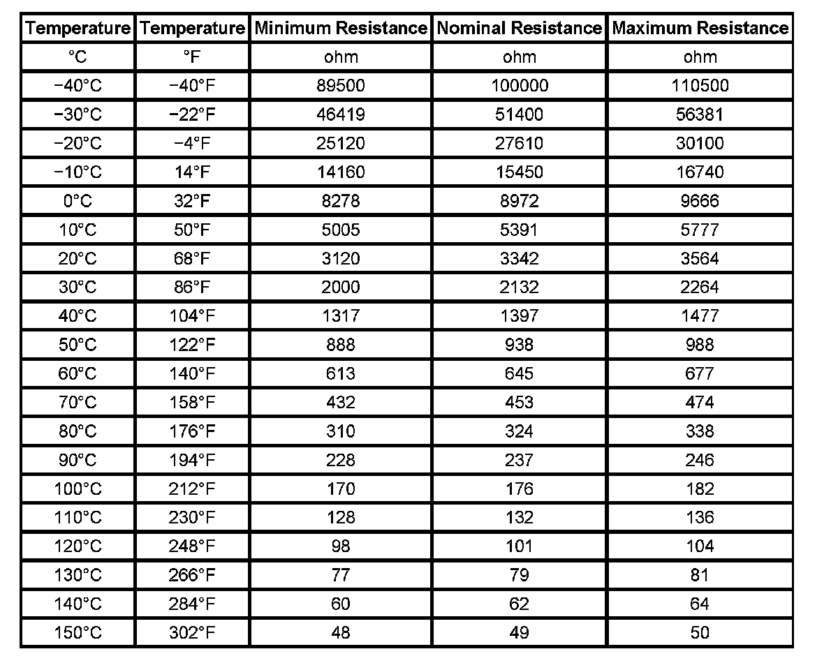 Transmission Fluid Temperature (TFT) Sensor Specifications:
