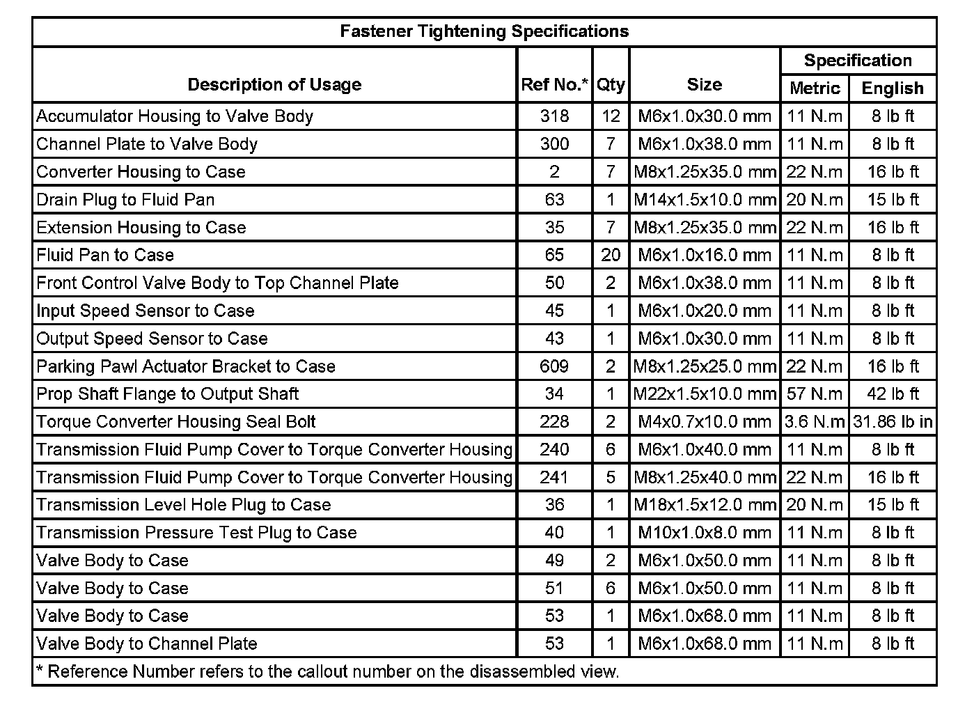 Fastener Tightening Specifications: