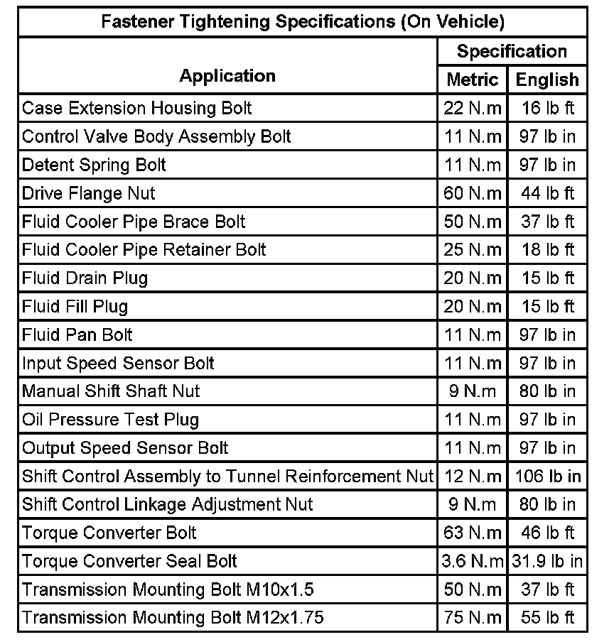 Fastener Tightening Specifications (On Vehicle):