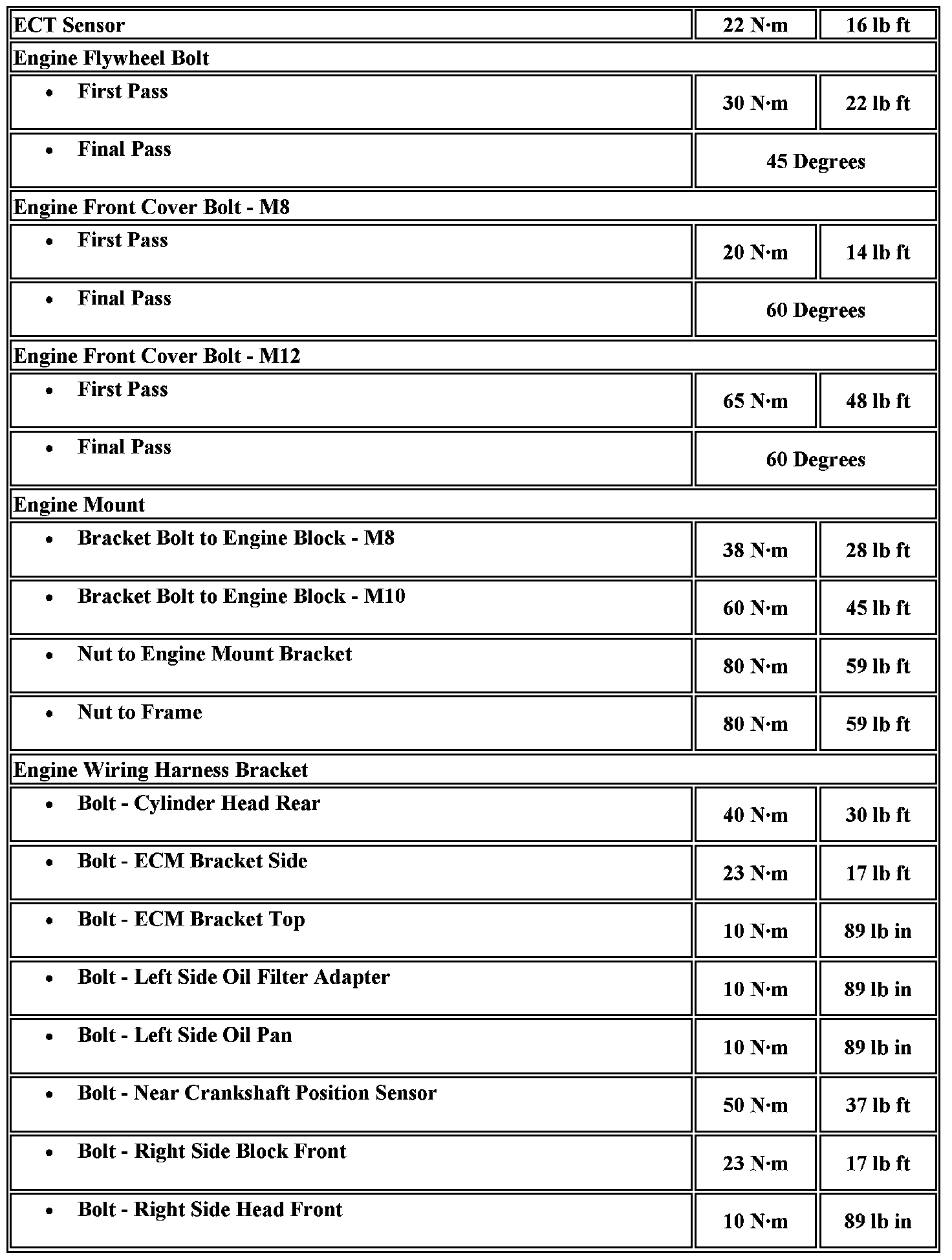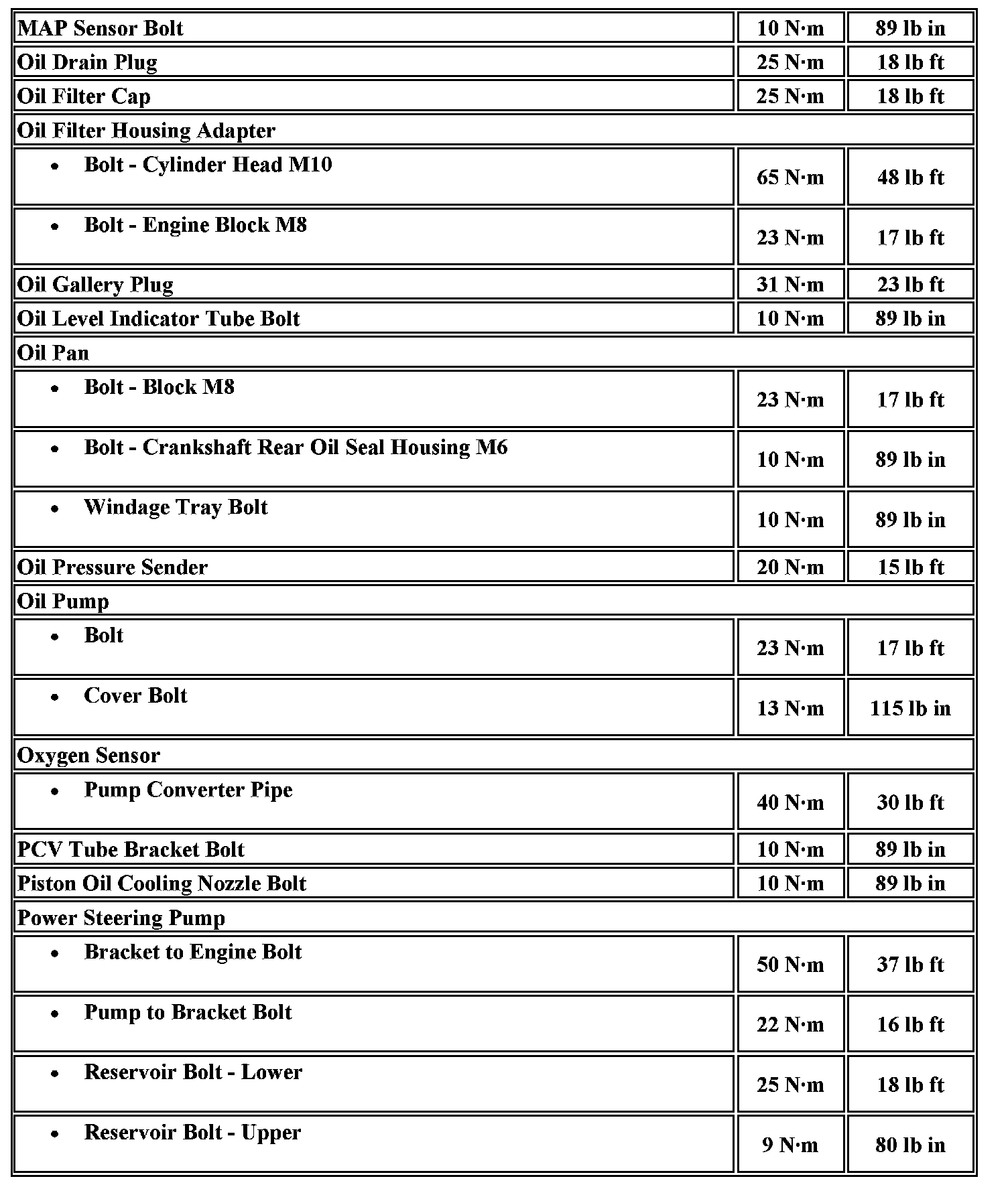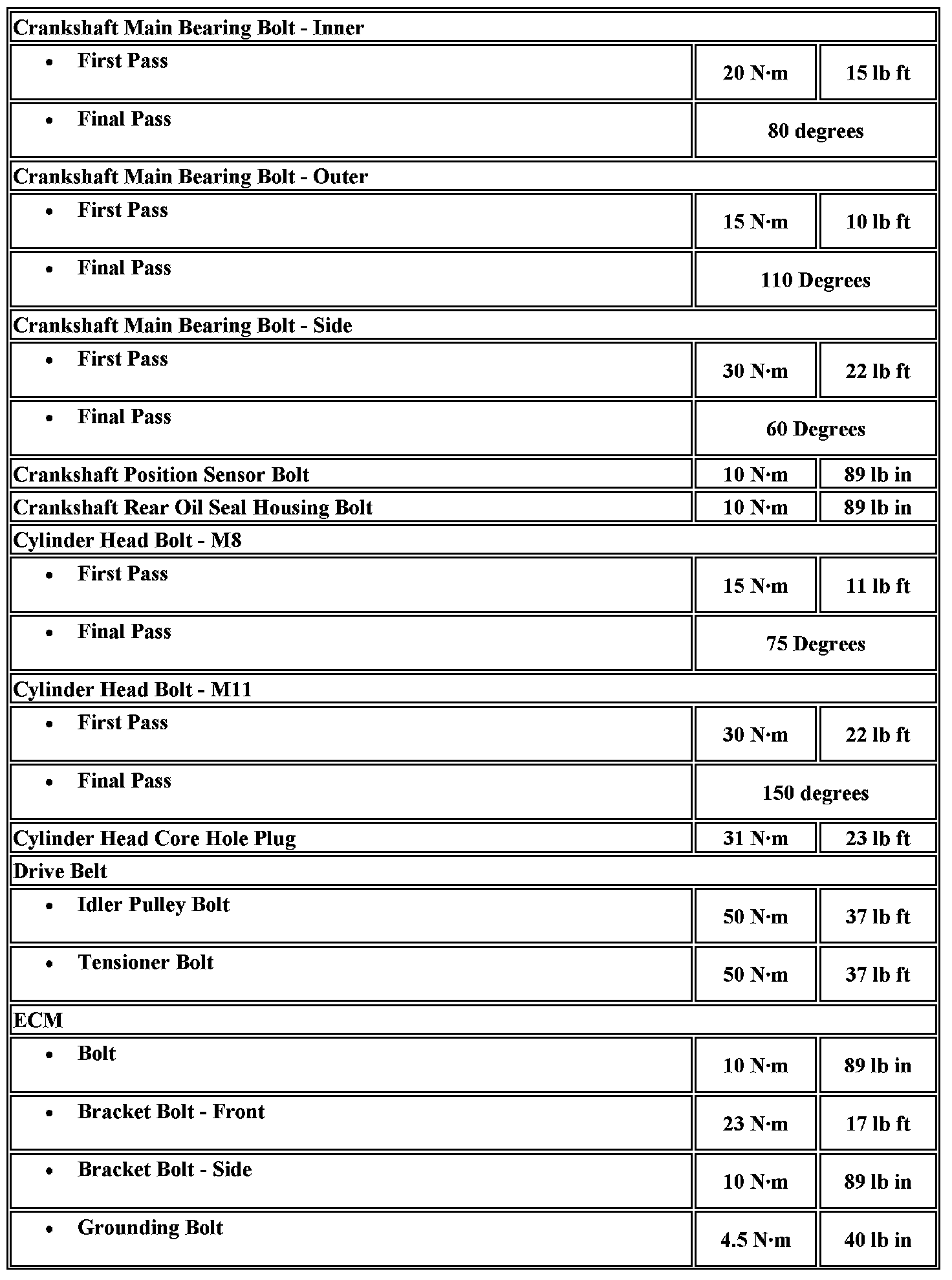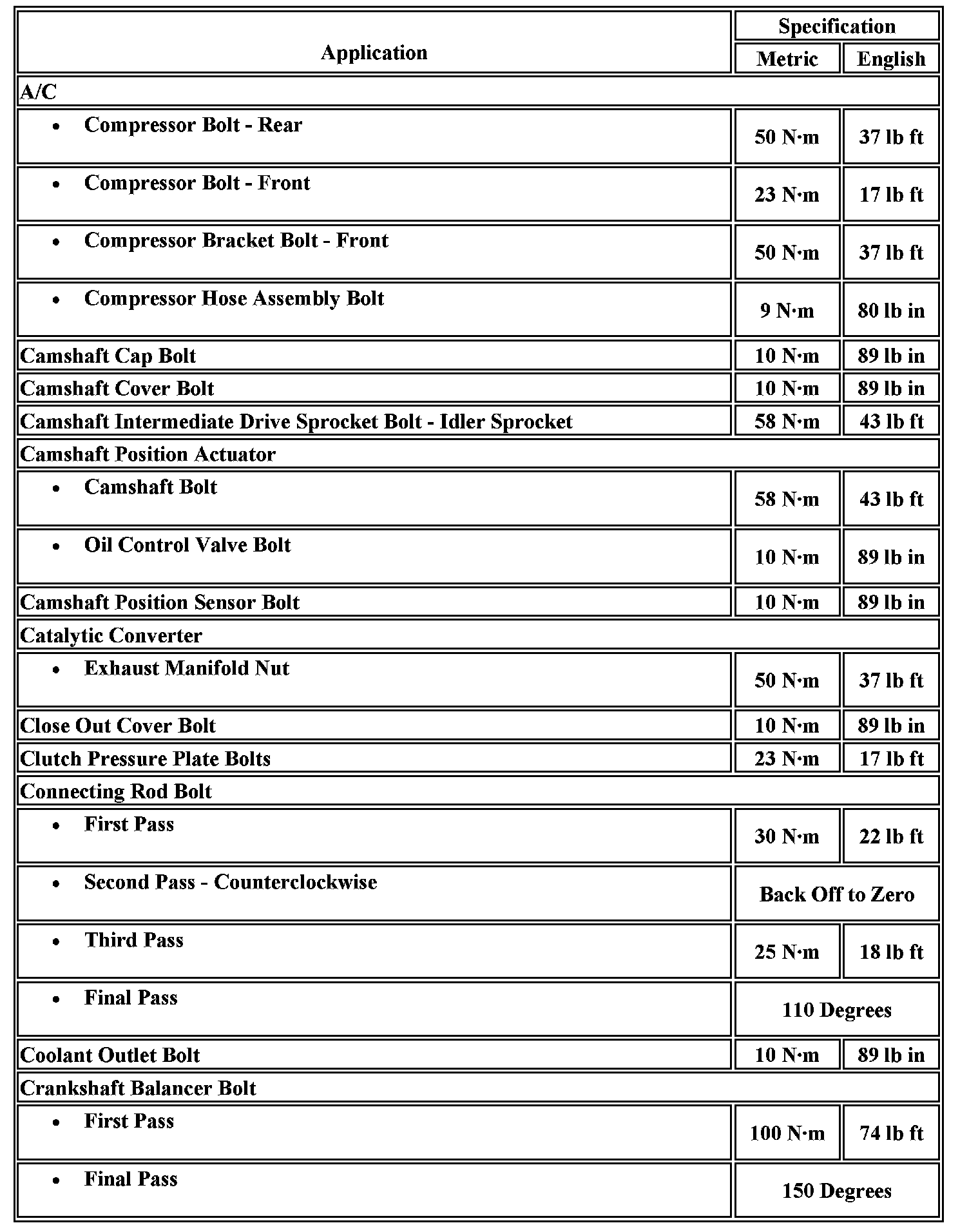 Fastener Tightening Specifications