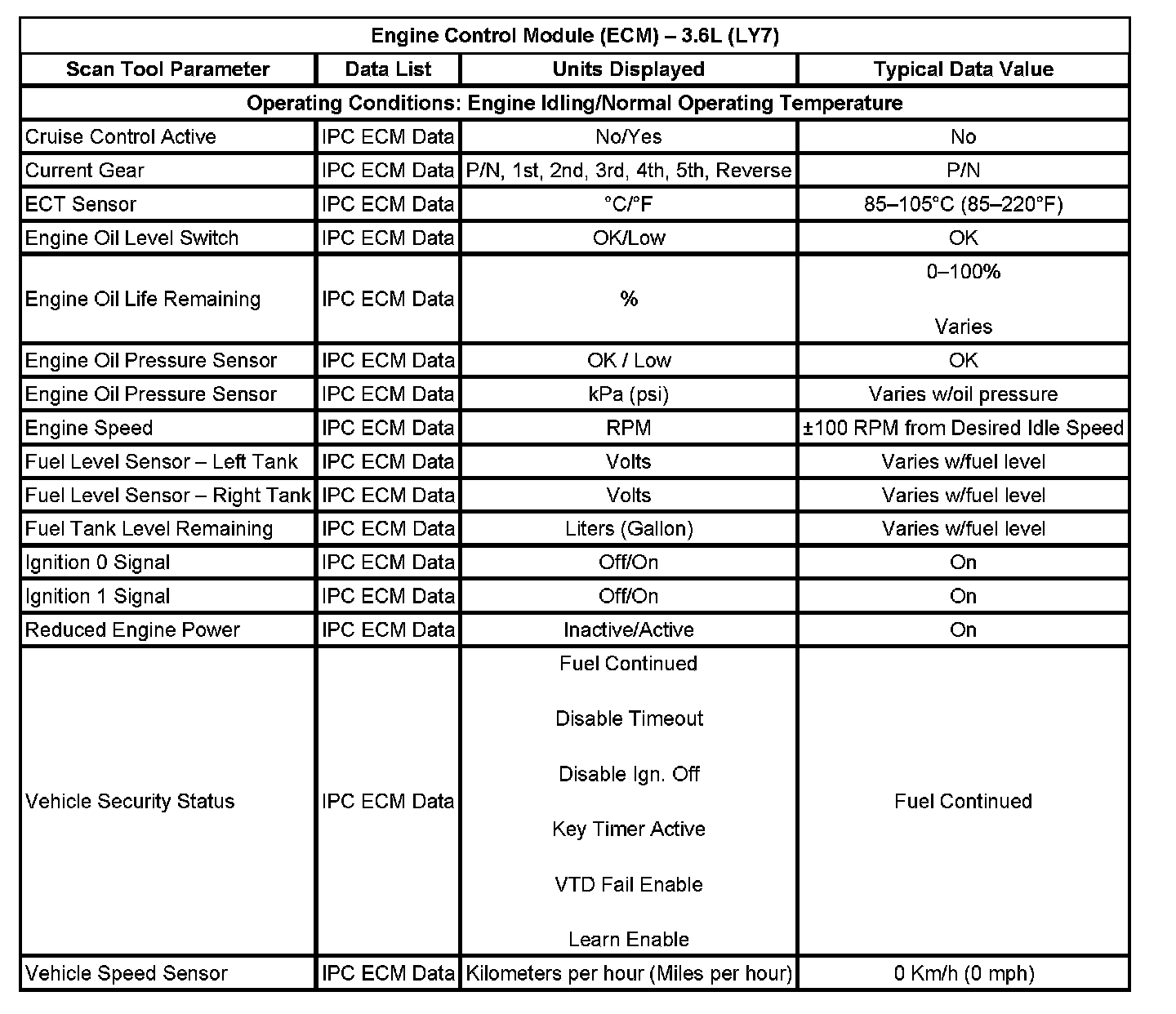 Scan Tool Data List