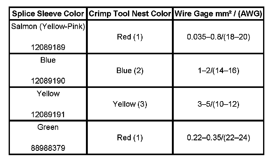 4. Select the proper DuraSeal splice sleeve according to the wire size. Refer to the table at the beginning of the repair procedure for the color coding of the DuraSeal splice sleeves and the crimp tool nests.
