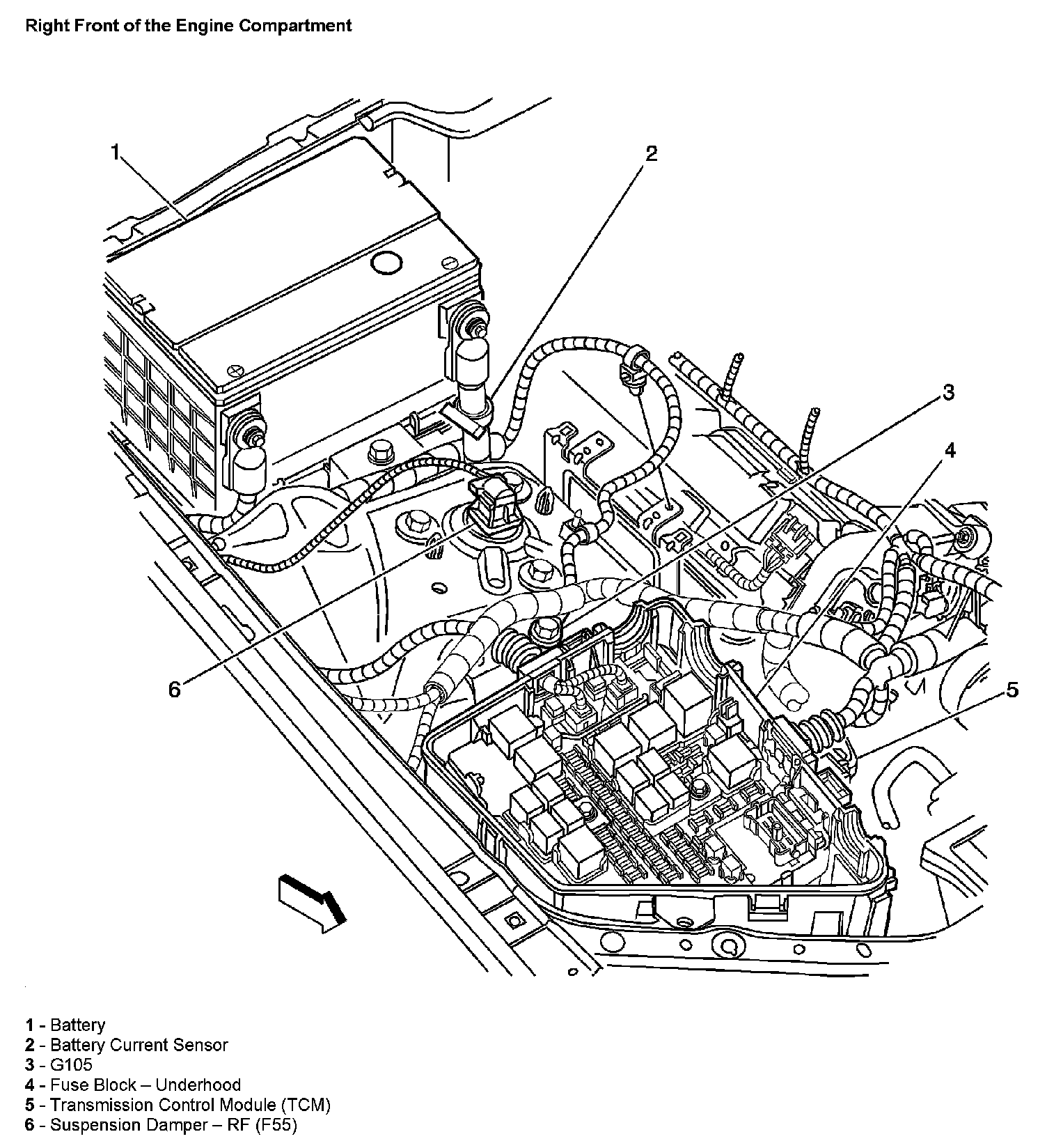 Right Front Of The Engine Compartment: