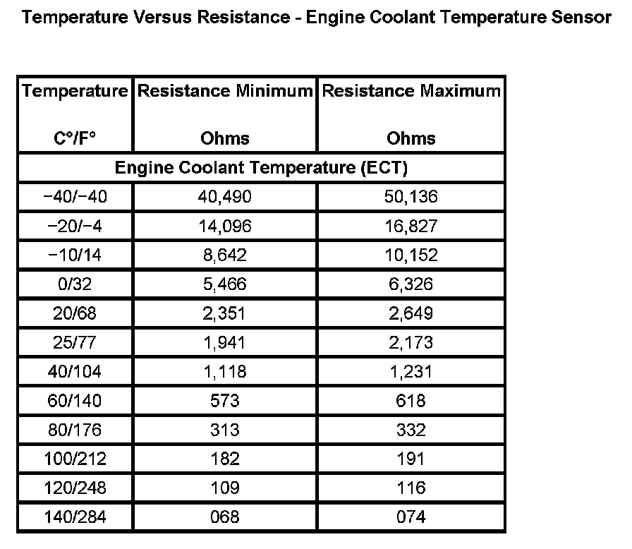 Temperature Versus Resistance - Engine Coolant Temperature Sensor:
