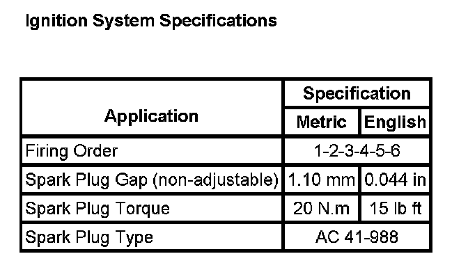Ignition System Specifications: