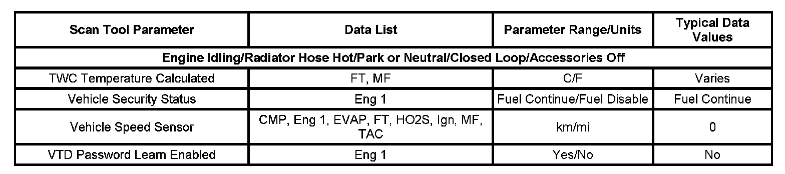 Only the parameters listed below are referenced in this service data for use in diagnosis. If all values are within the typical range described below, refer to Symptoms - Computers and Control Systems for diagnosis. - Symptoms - Engine Controls