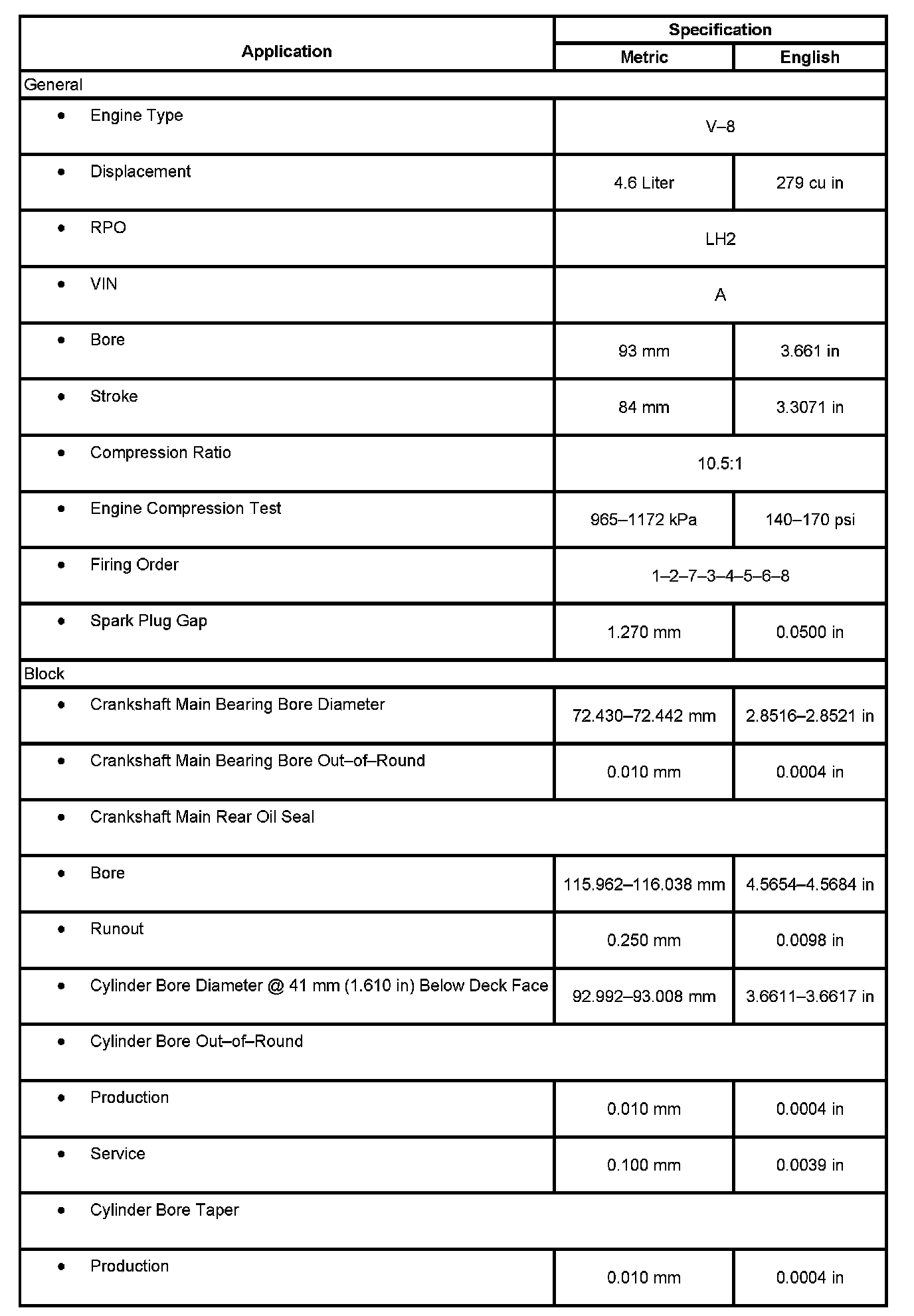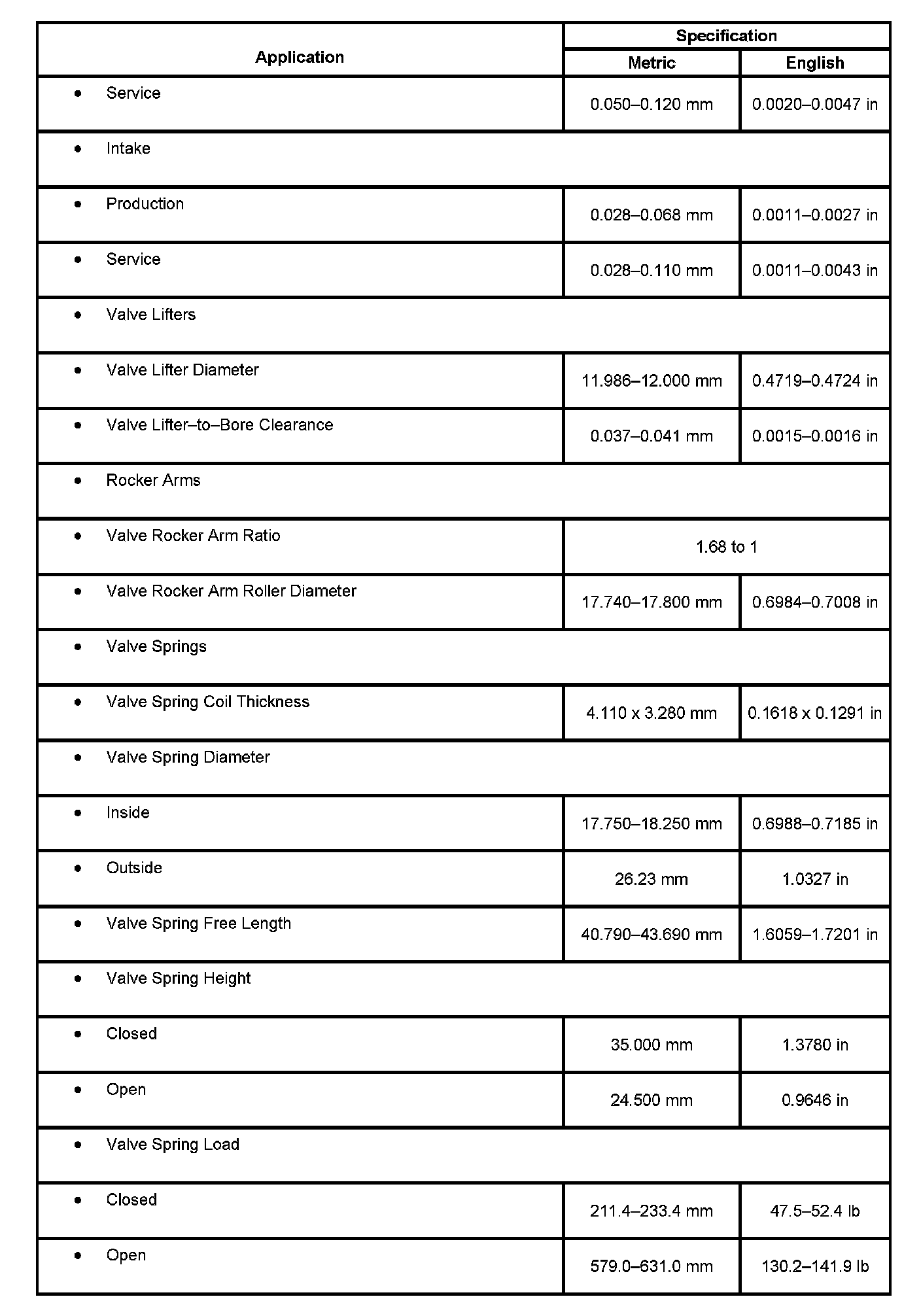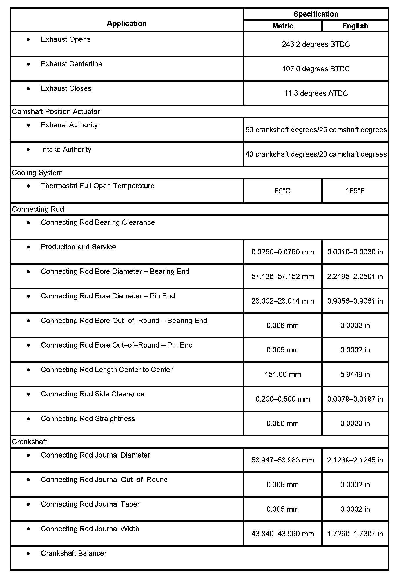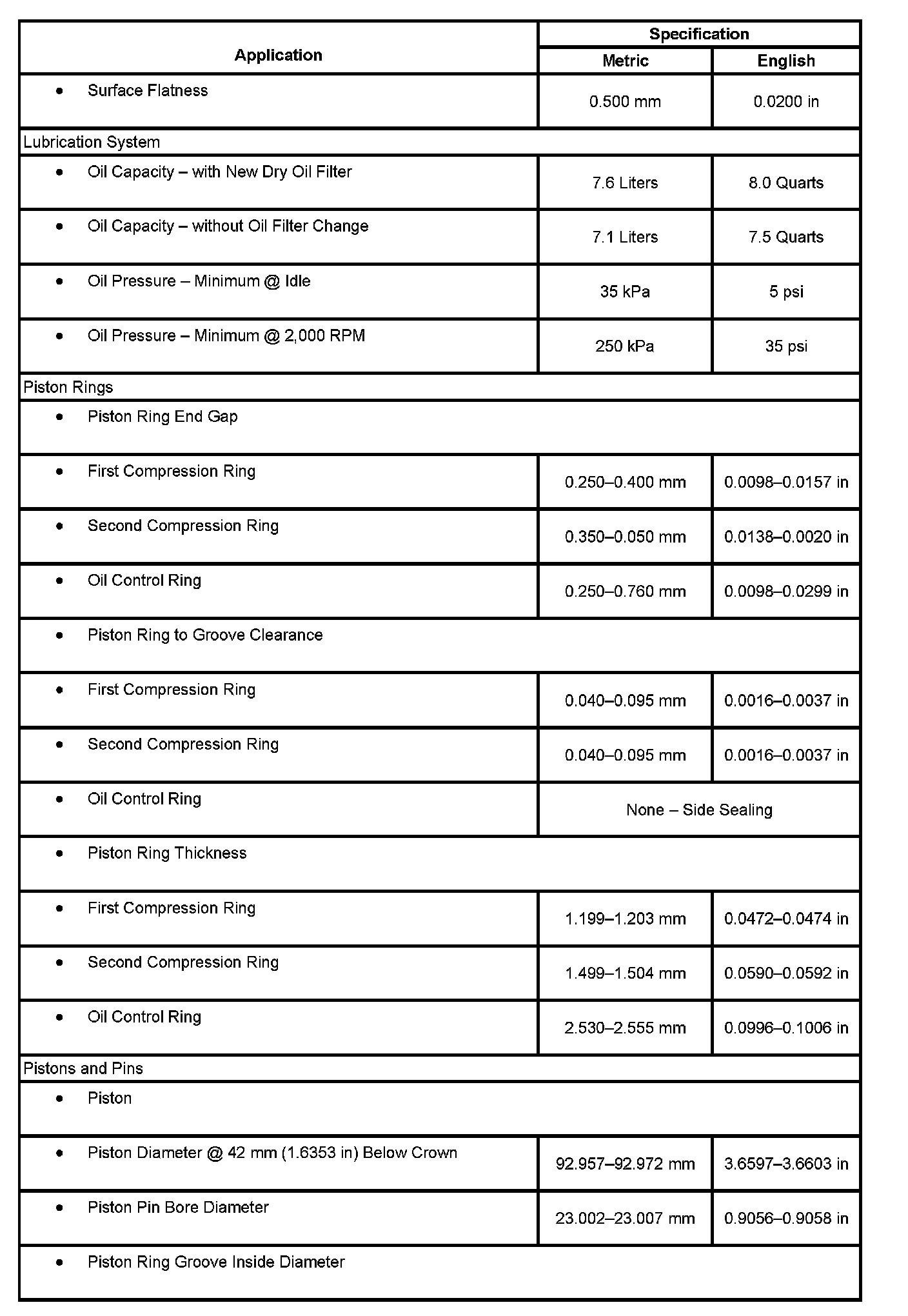 Engine Mechanical Specifications: