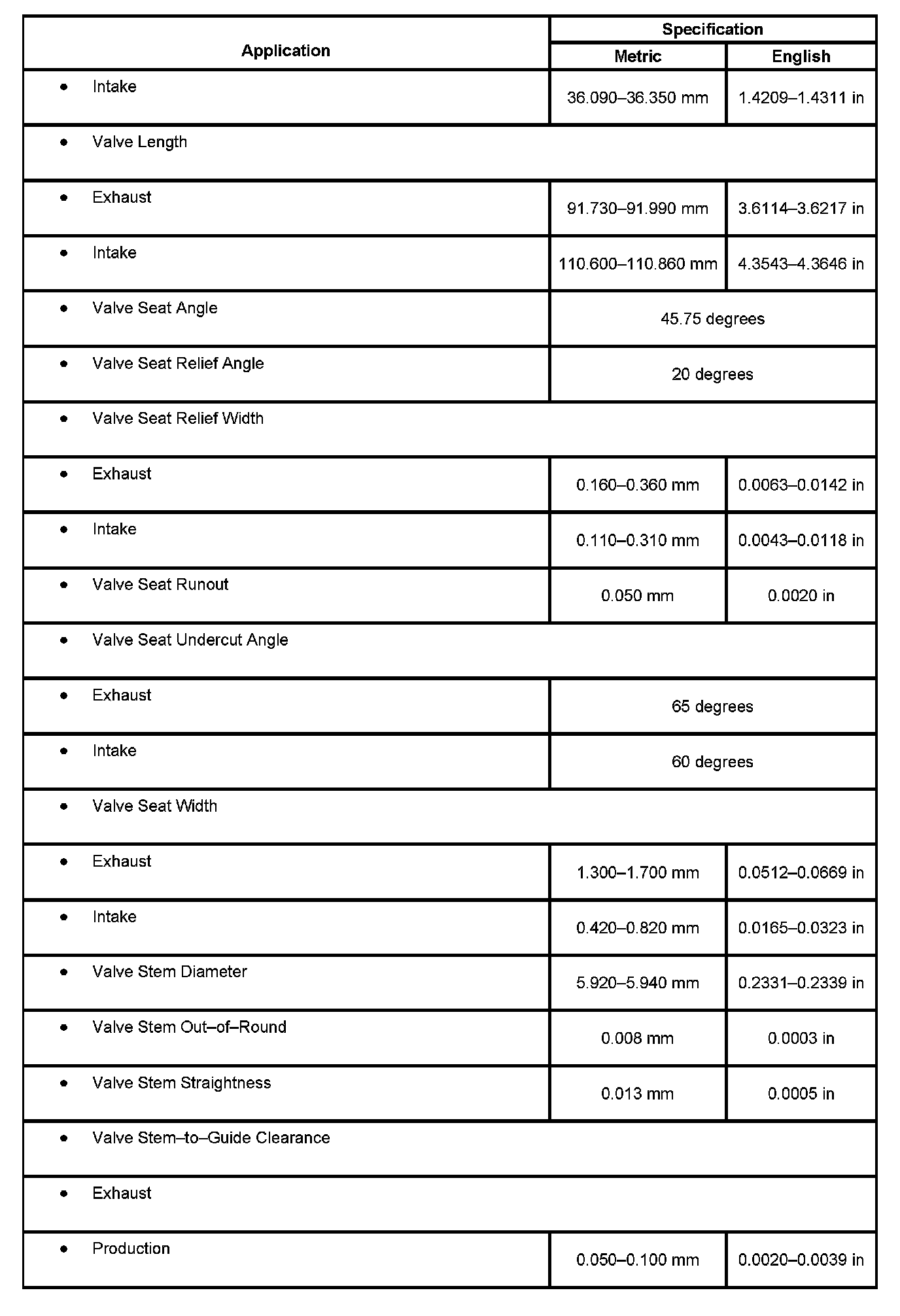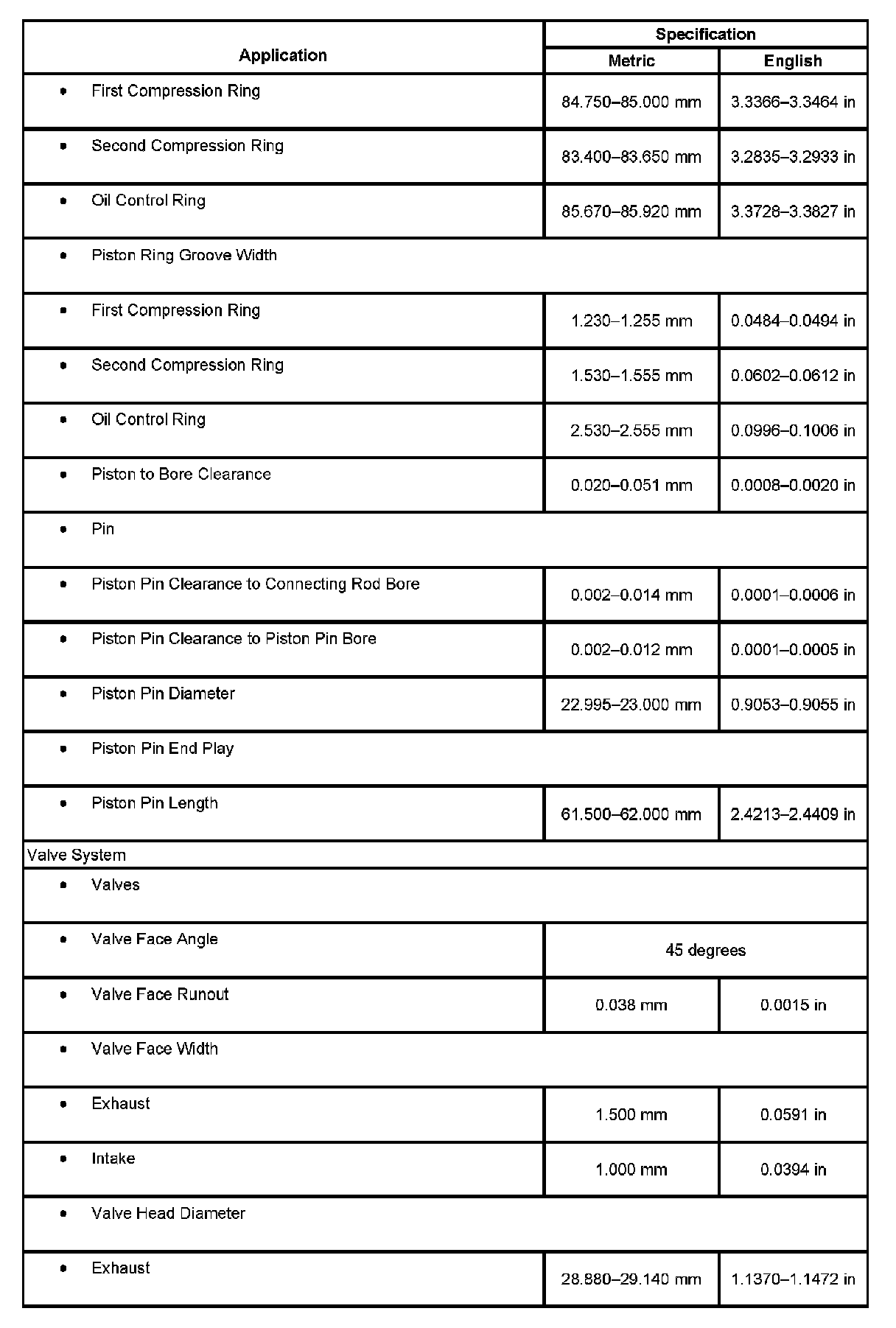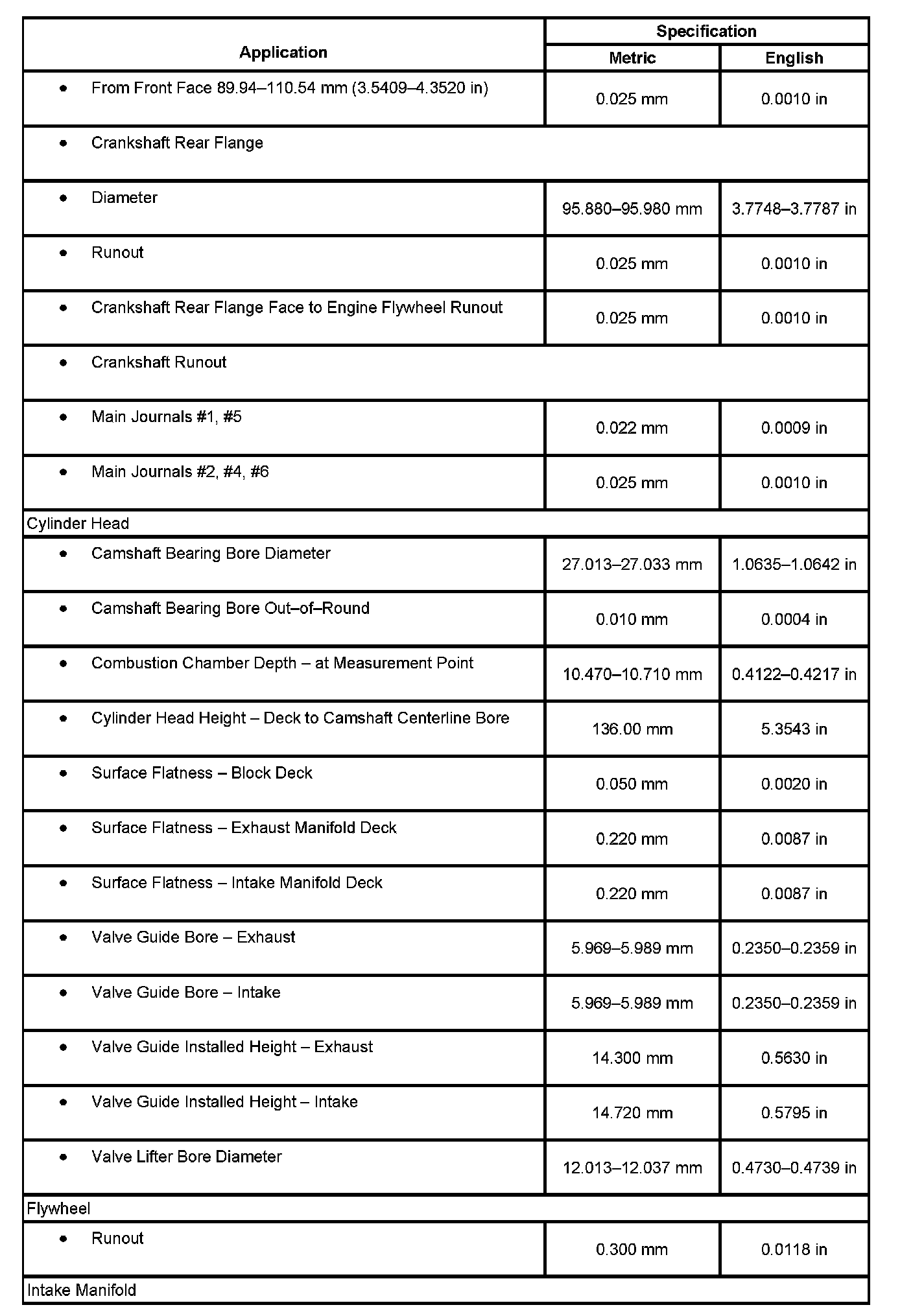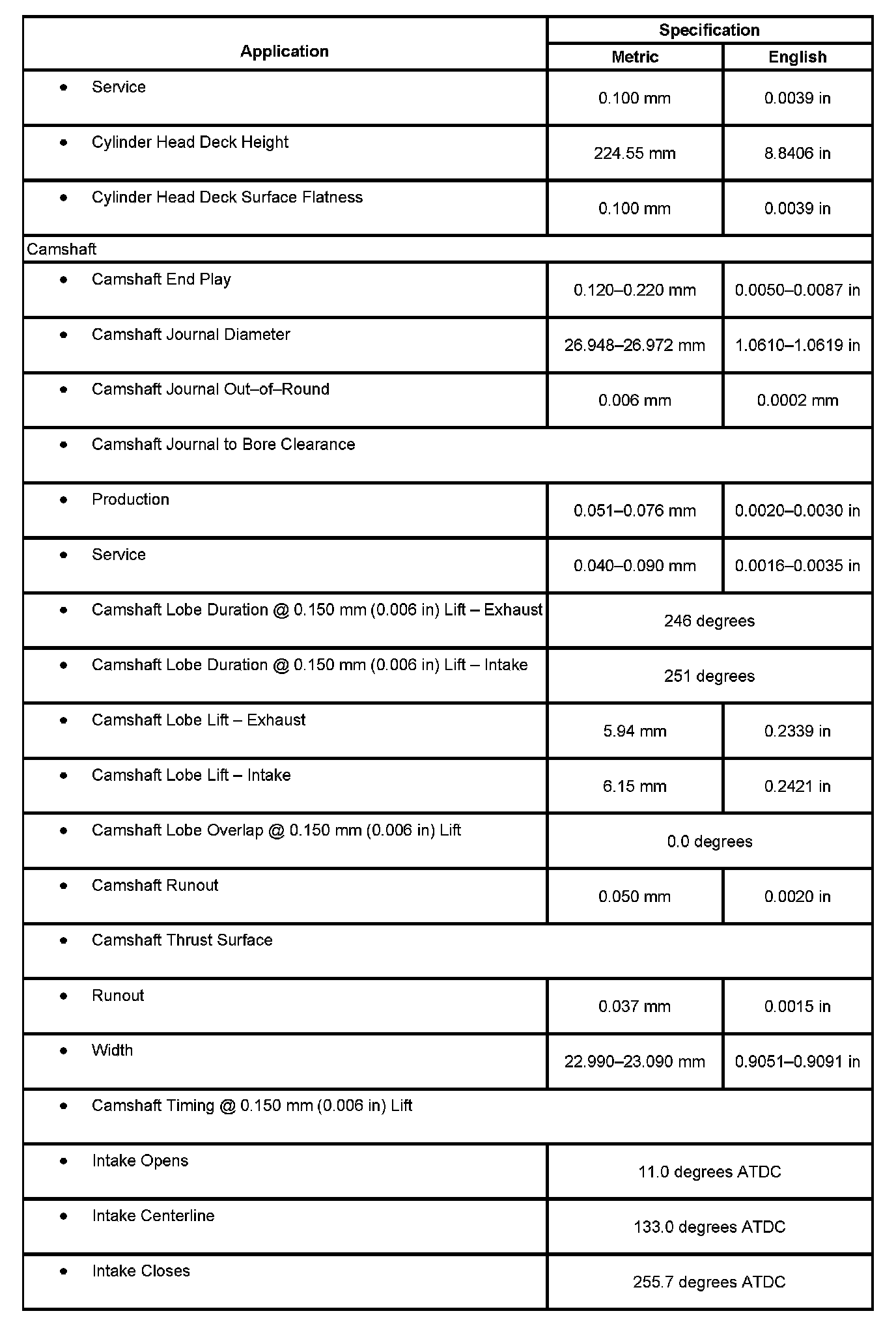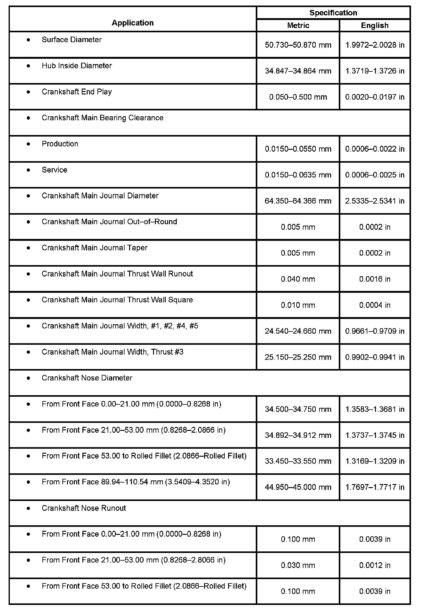 Engine Mechanical Specifications: