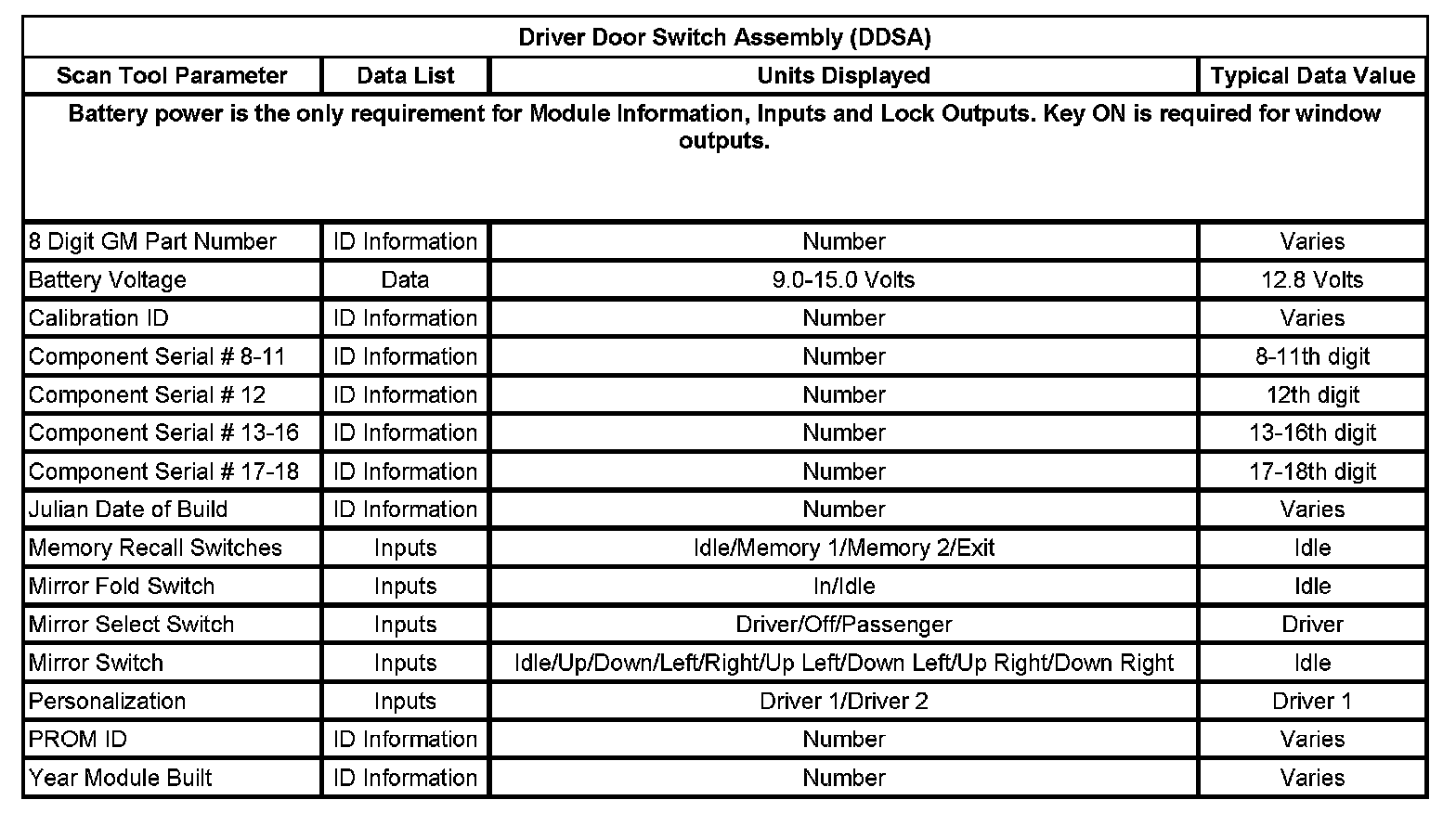 Driver Door Switch Assembly (DDSA)