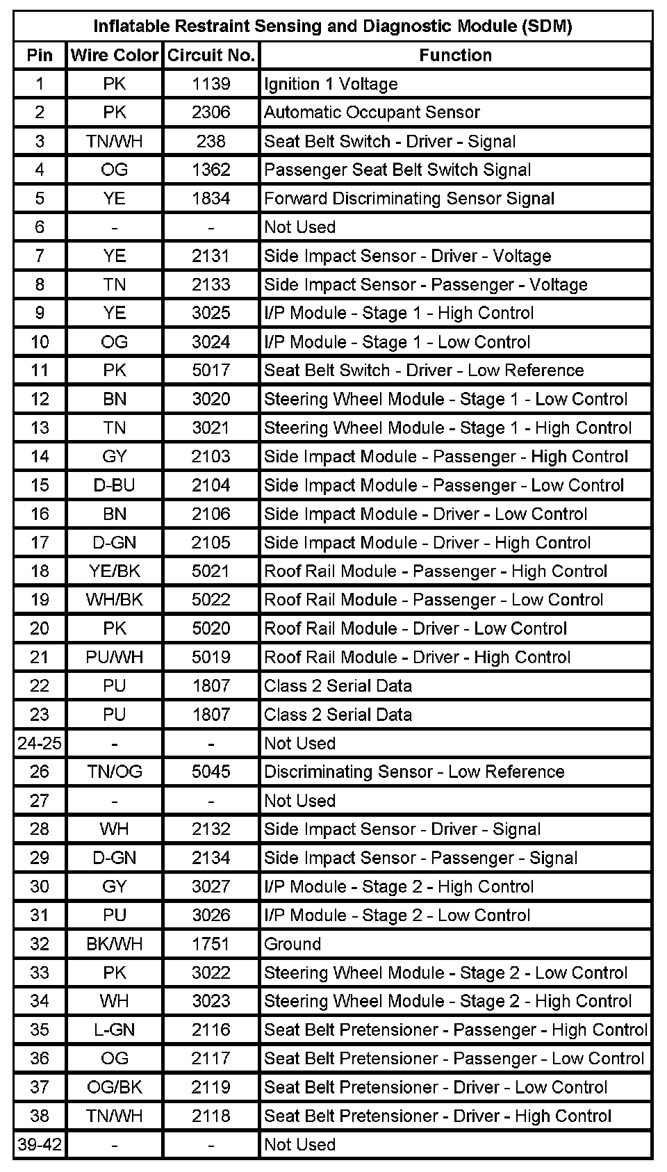 Inflatable Restraint Sensing and Diagnostic Module (SDM)