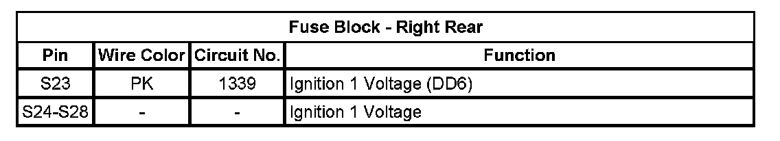 Fuse Block - Right Rear (Pin FU34 To S22):