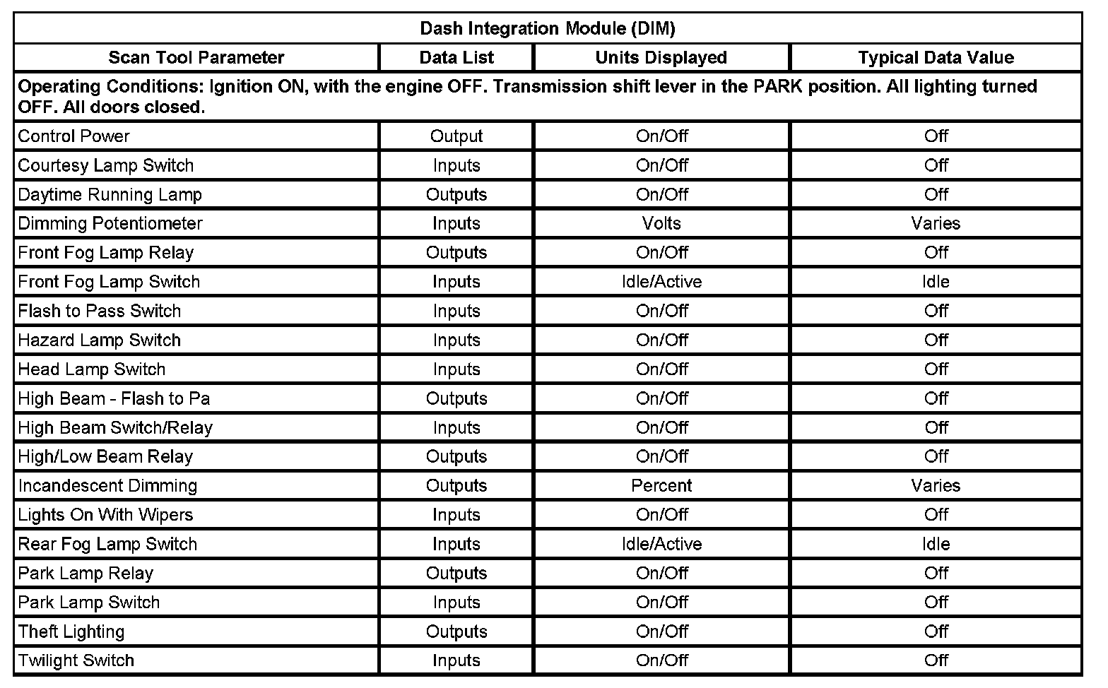 Scan Tool Data List