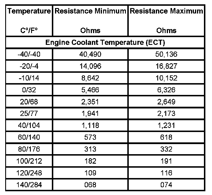 Temperature Versus Resistance - Engine Coolant Temperature Sensor