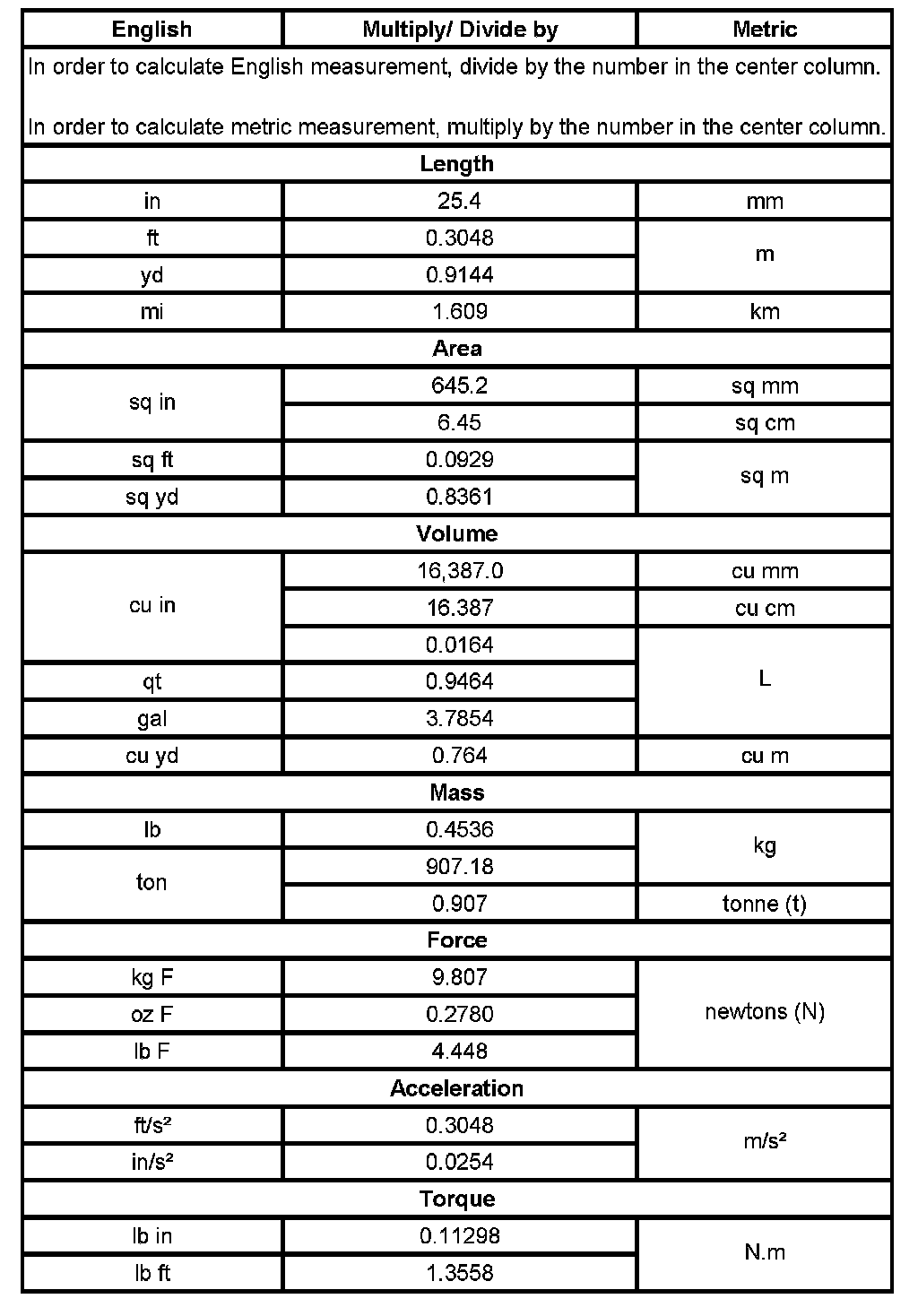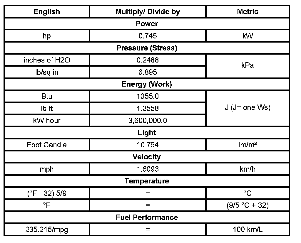 US English/Metric Conversion