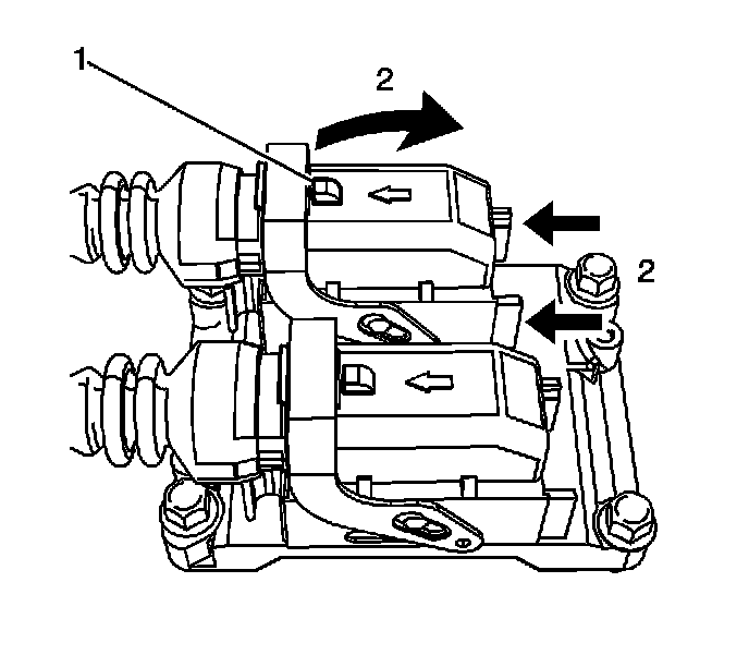 2. Simultaneously rotate the ECM connector clamp lever and depress the lock slide (2).