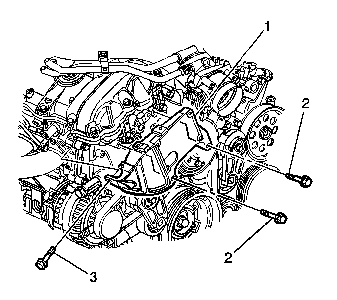 2. Tighten the ECM bracket to engine front cover bolt (3) to 23 N.m (17 lb ft).