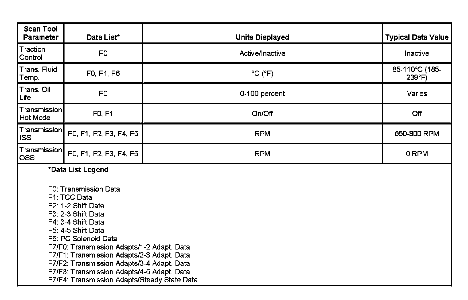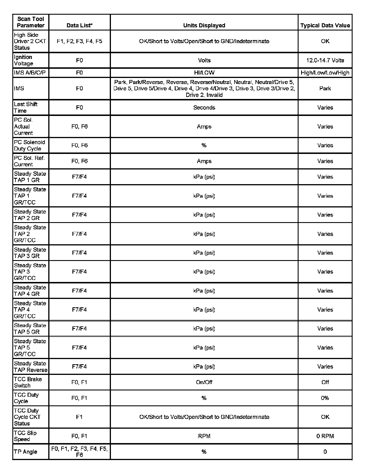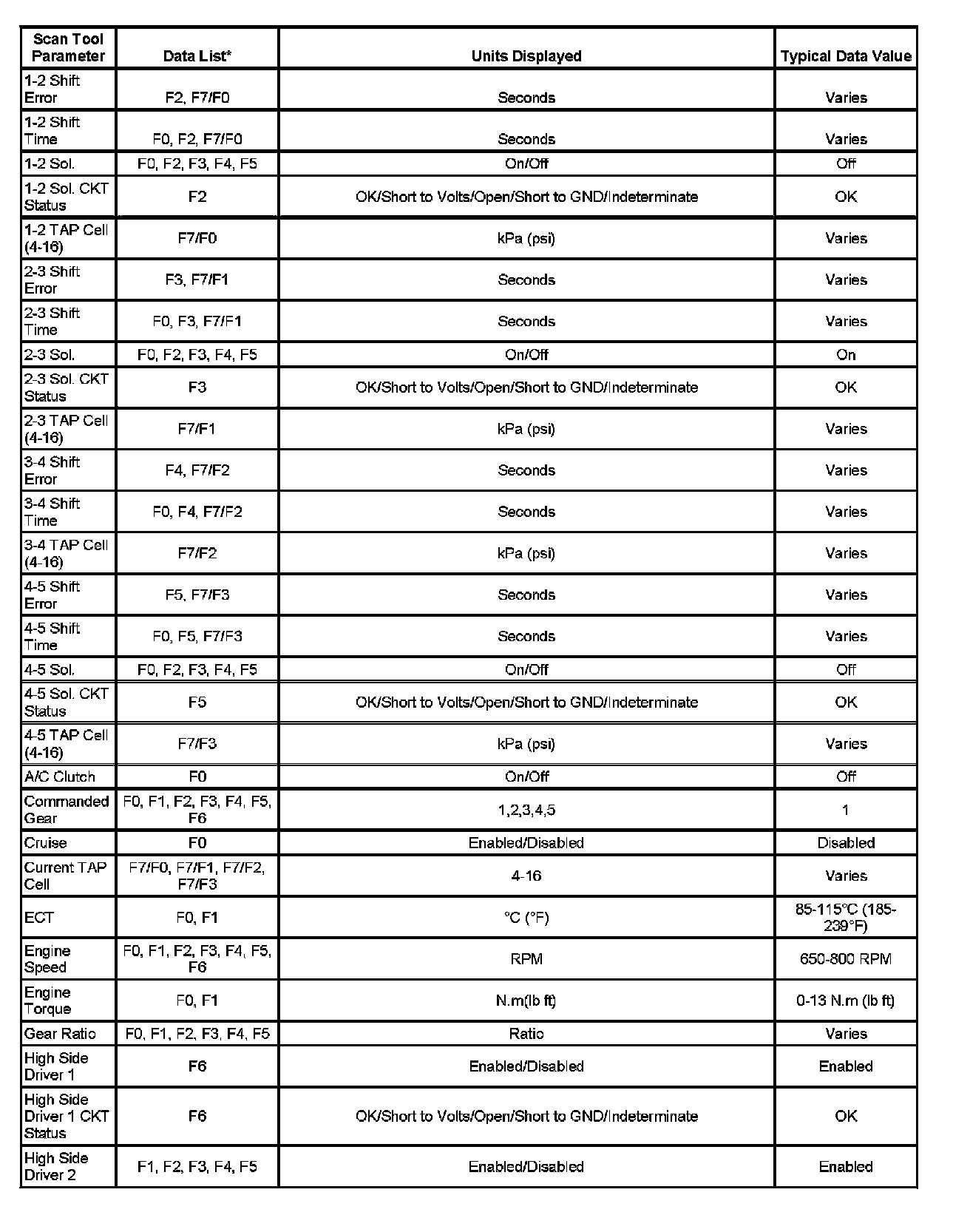 Home >> Cadillac >> 2007 >> CTS V6-3.6L >> Repair and Diagnosis >> Powertrain Management >> Transmission Control Systems >> Testing and Inspection >> Scan Tool Data List