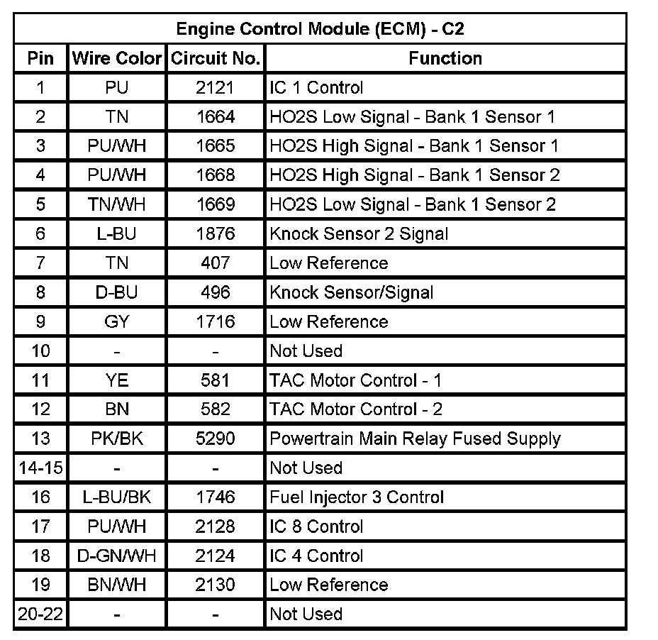 Engine Control Module (ECM) - C2 (Pin 1 To 22):