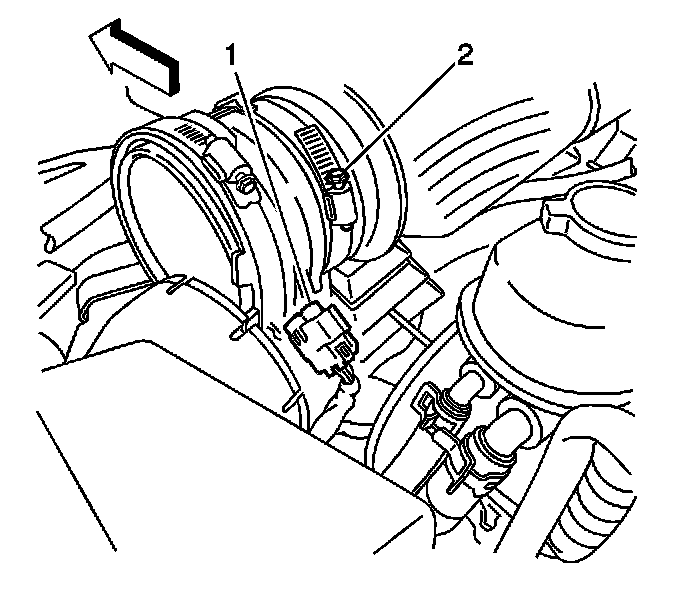 3. Loosen the MAF/IAT clamp (2).