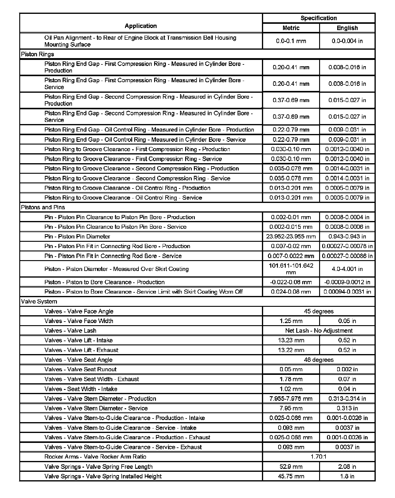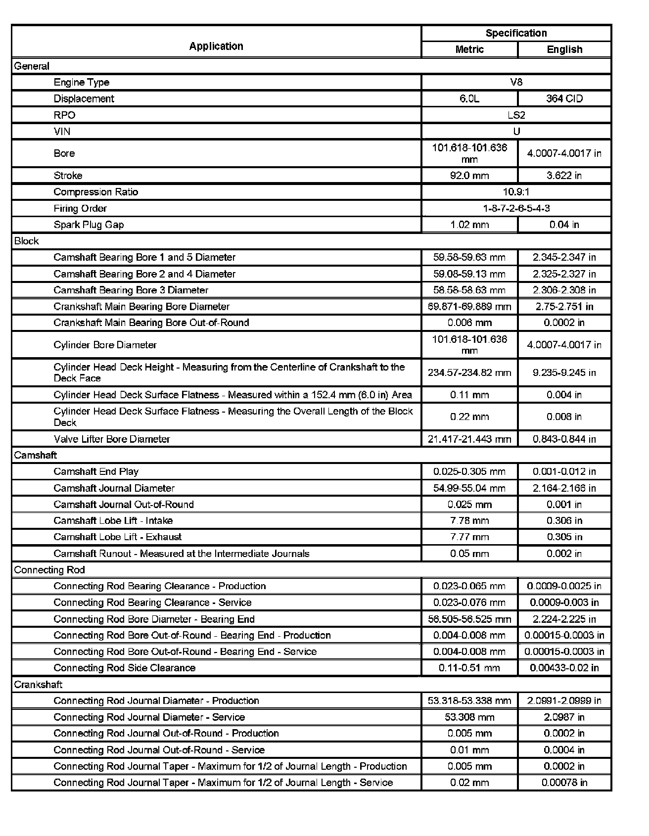 Home >> Cadillac >> 2007 >> CTS V8-6.0L >> Repair and Diagnosis >> Specifications >> Mechanical Specifications >> Engine >> System Specifications >> Engine General Specifications & Service Limits
