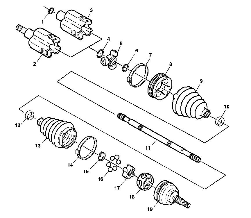 Wheel Drive Shafts Disassembled Views: