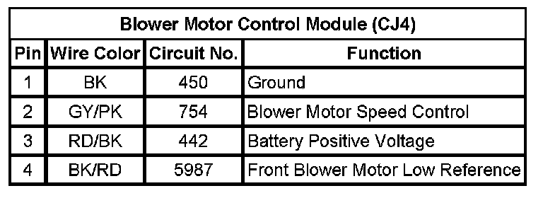 Blower Motor Control Module C1 (CJ2)