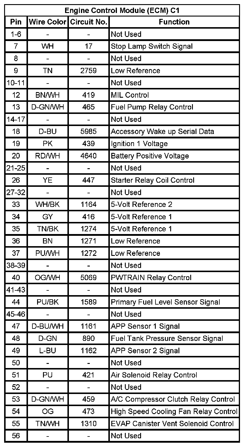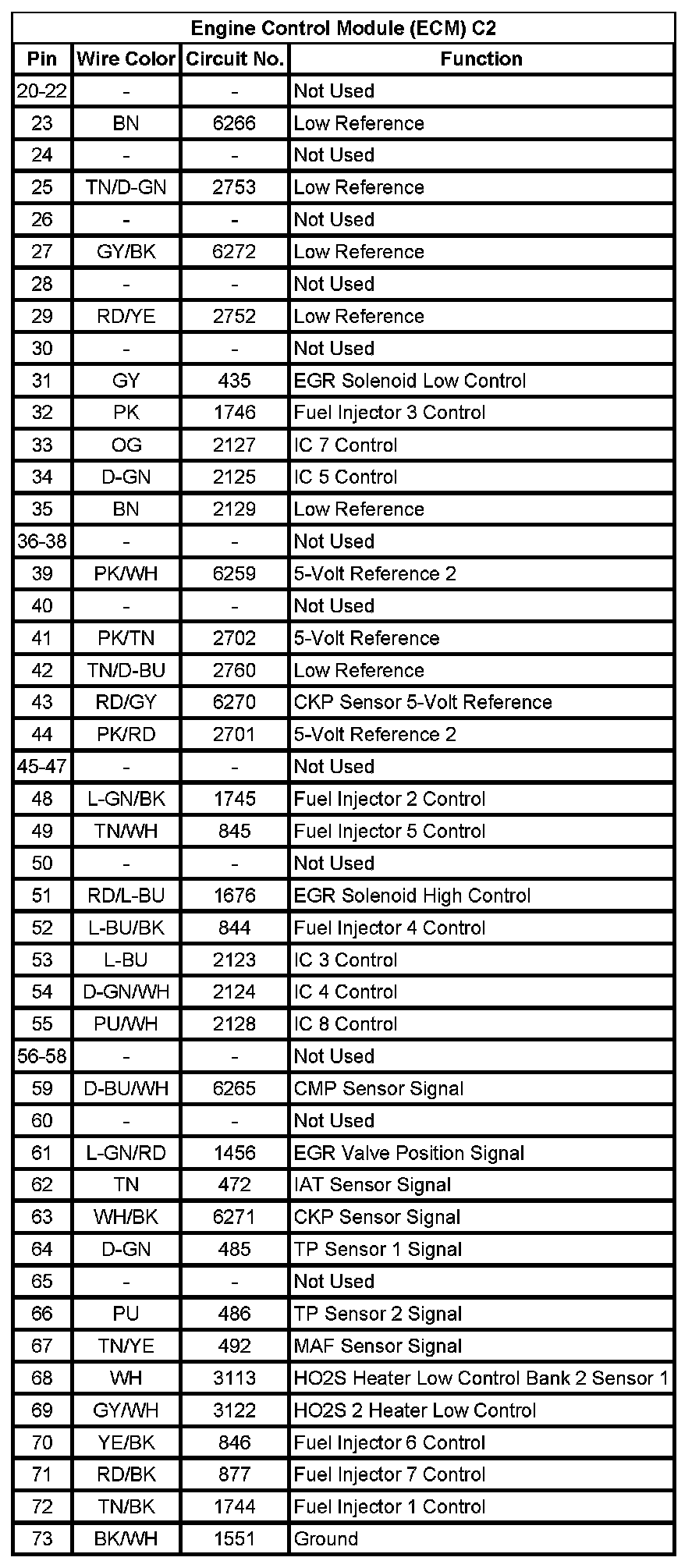 Engine Control Module (ECM) C2 (Pin 20 To 73):