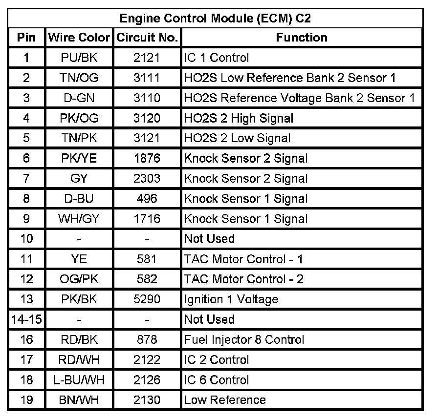 Engine Control Module (ECM) C2 (Pin 1 To 19):