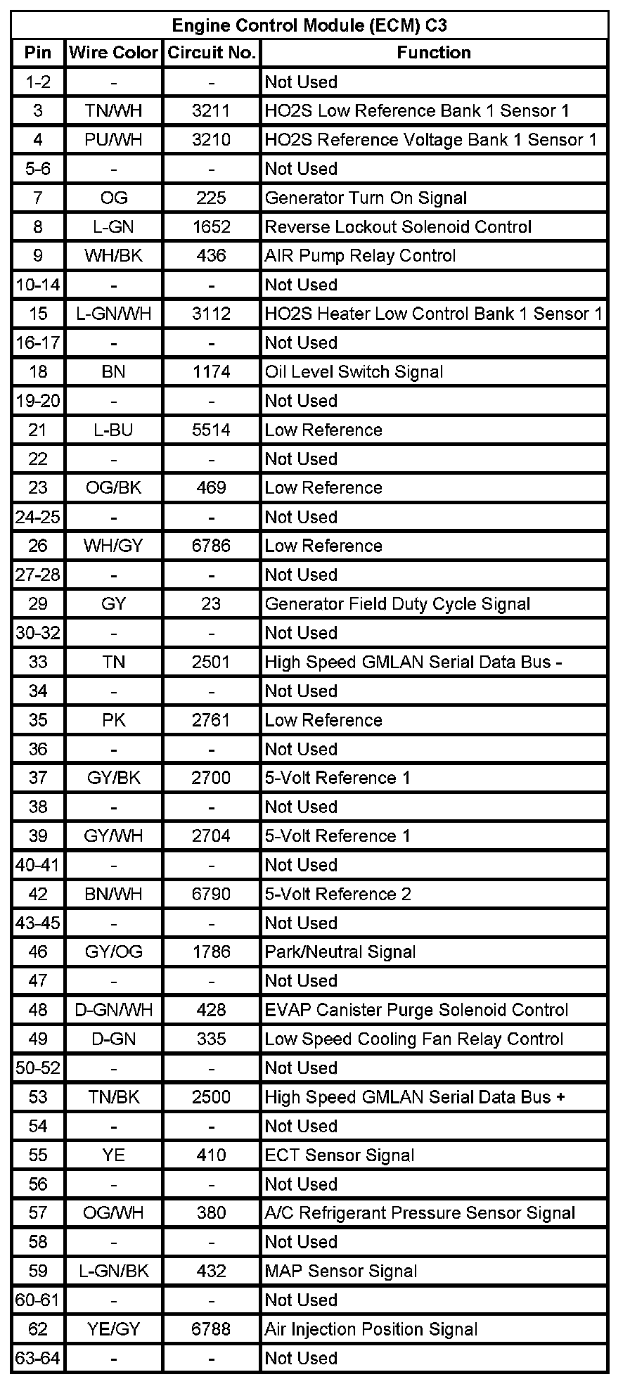 Engine Control Module (ECM) C3 (Pin 1 To 64):