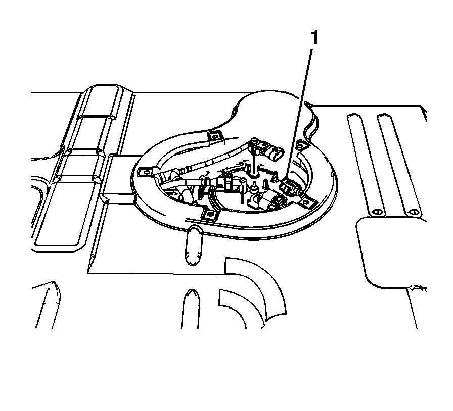 4. Disconnect the fuel level sensor wiring harness electrical connector (1) fuel tank pressure sensor.