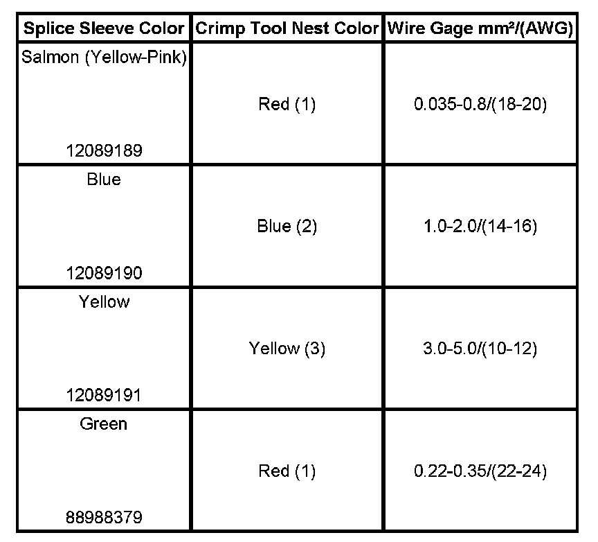 4. Select the proper DuraSeal splice sleeve according to the wire size. Refer to the above table at the beginning of the repair procedure for the color coding of the DuraSeal splice sleeves and the crimp tool nests.