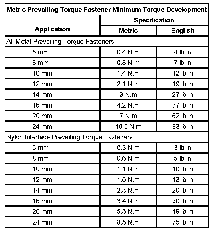 * The fastener develops the specified minimum torque against its counterpart prior to the fastener seating