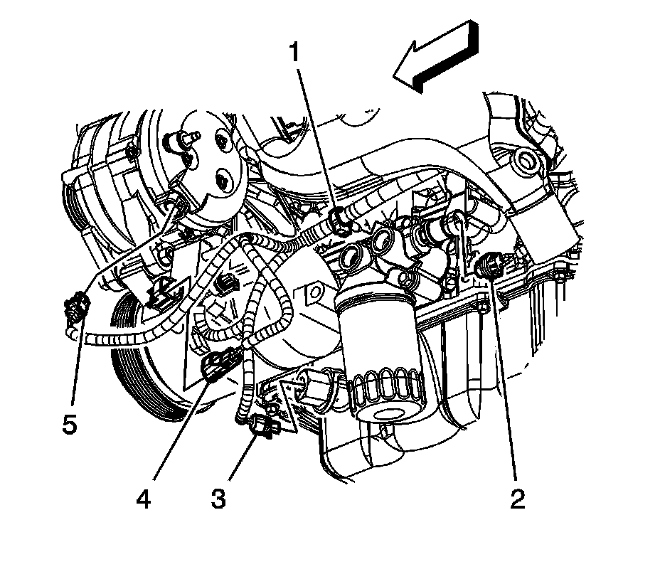 4. Disconnect the engine wiring harness electrical connector (5) from the generator.