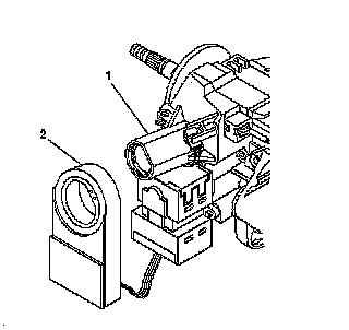 4. Install the theft deterrent module (2) to the ignition lock cylinder case (1).