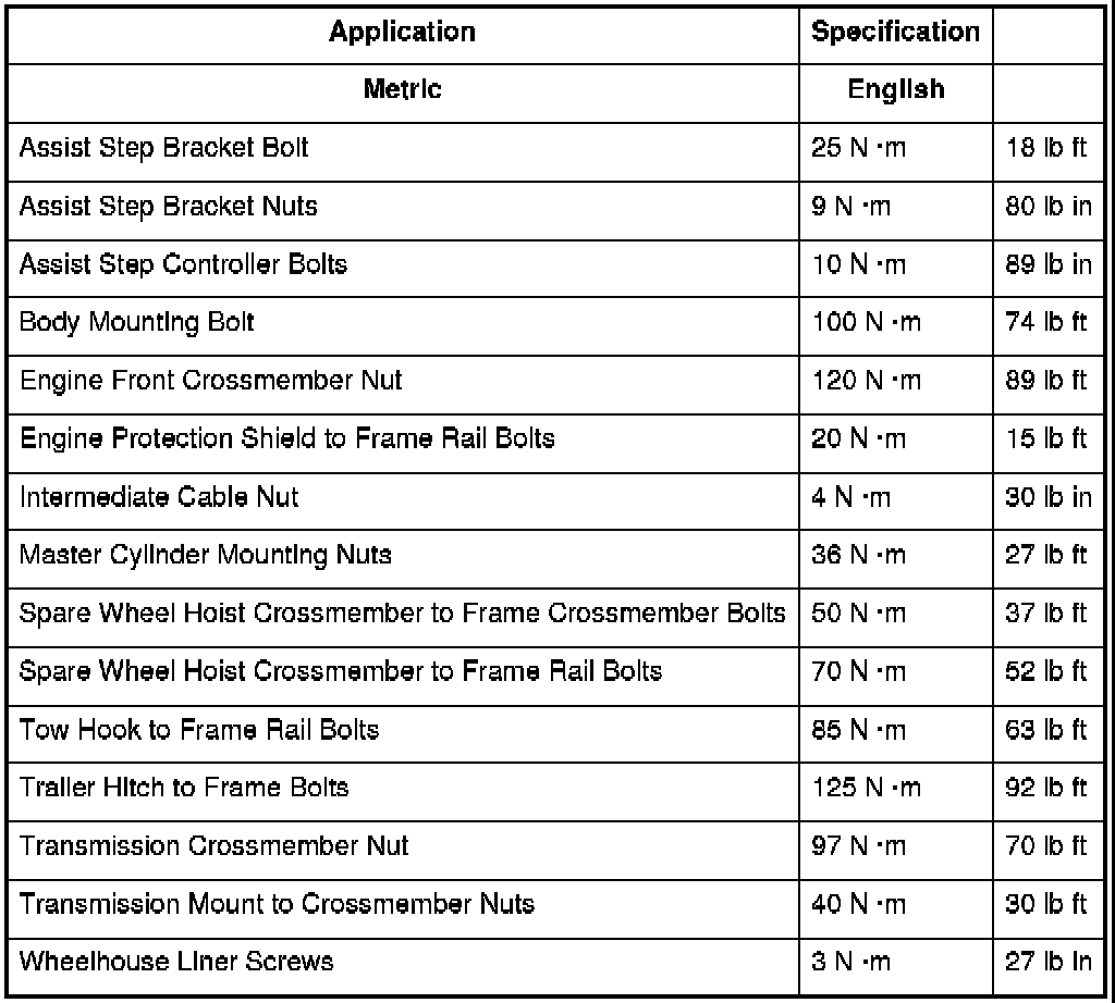 Fastener Tightening Specifications