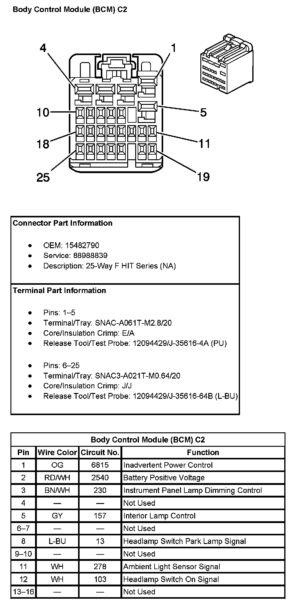 Body Control Module (BCM) C2 (Pin 17 To 25):