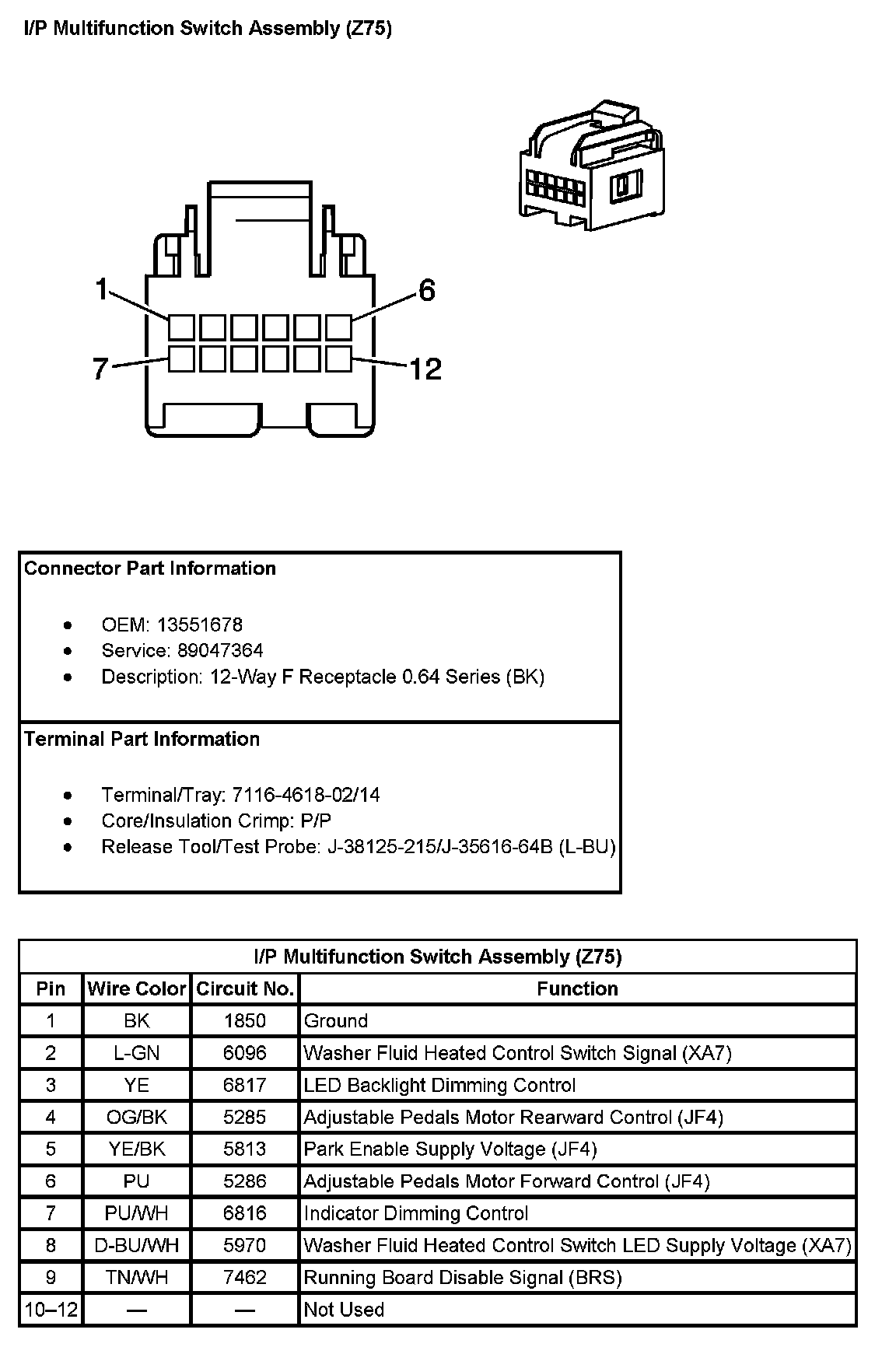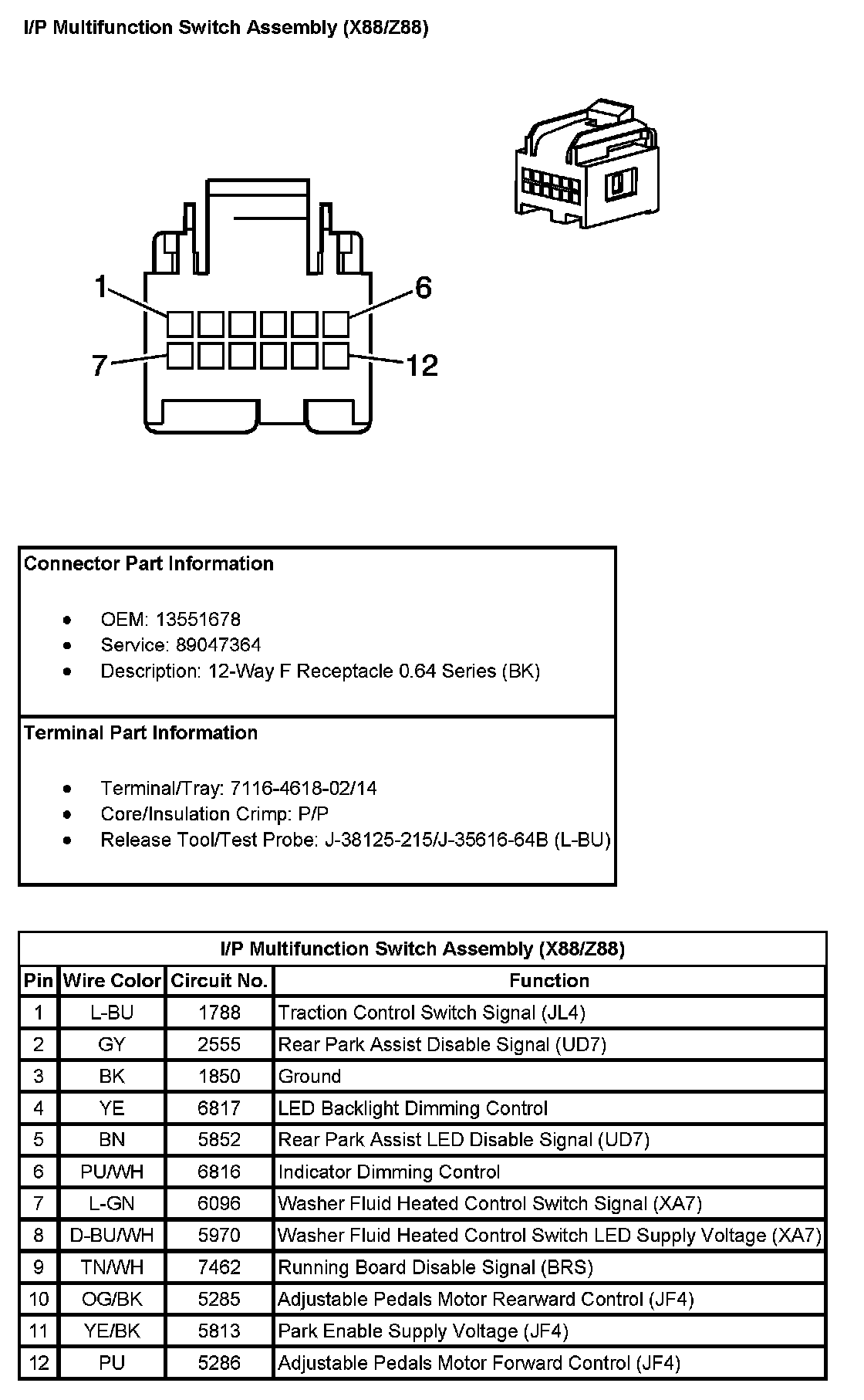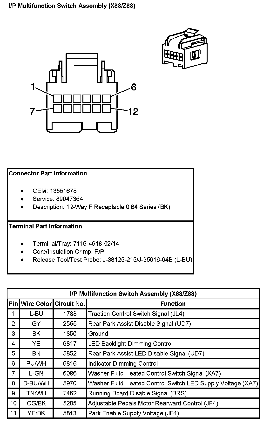I/P Multifunction Switch Assembly (With RPO Codes X88/Z88) (Pin 12):