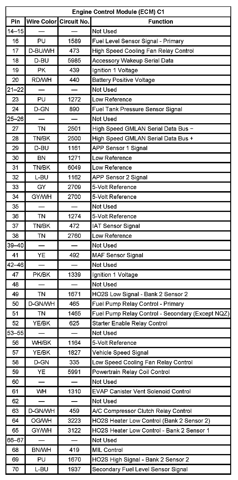 Engine Control Module (ECM) C1 (Pin 14 To 70):