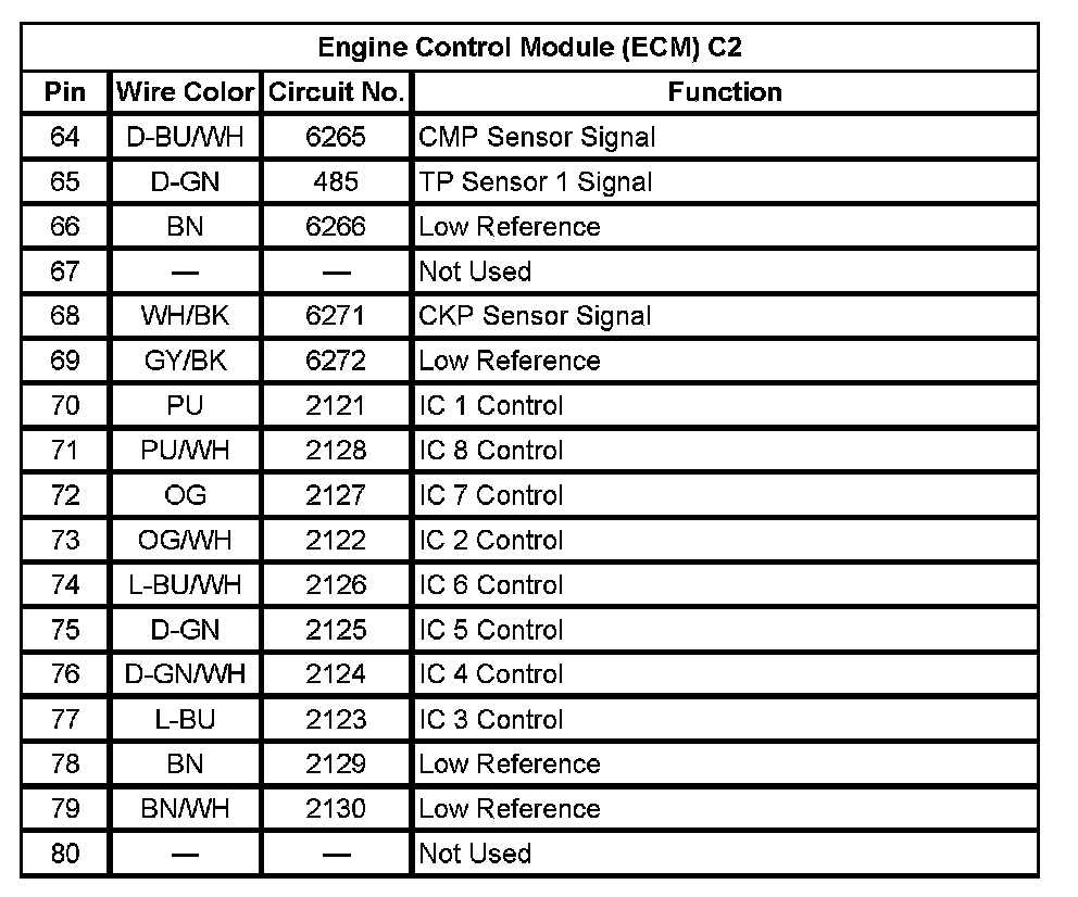 Engine Control Module (ECM) C2 (Pin 64 To 80):