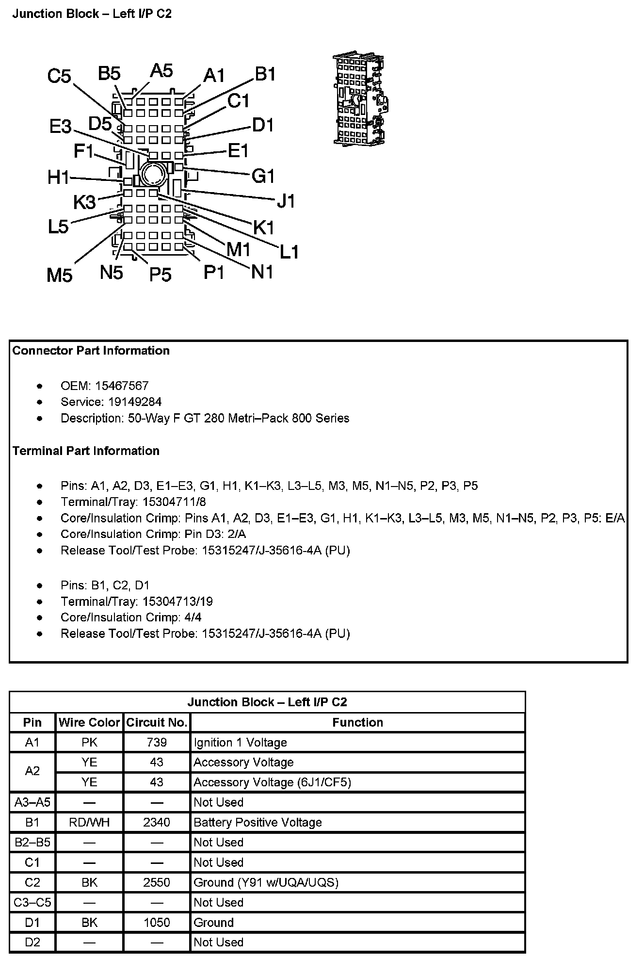 Junction Block - Left I/P C2 (Pin D3 TO P5):