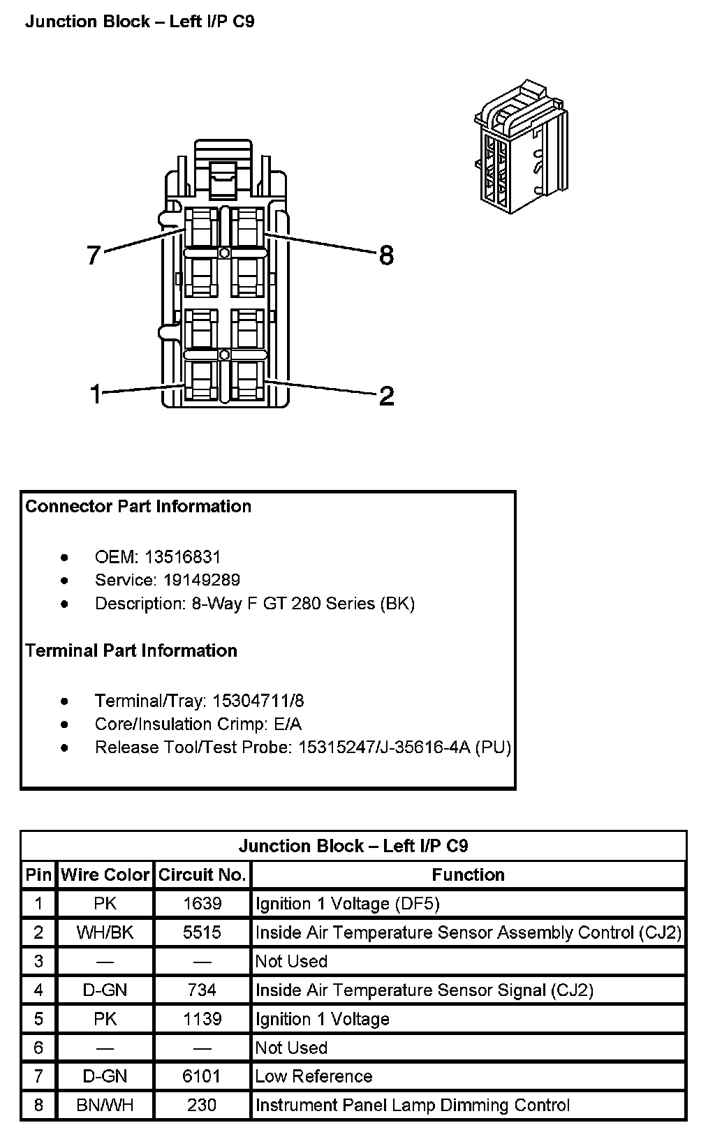 Junction Block - Left I/P C13 (With RPO Codes JF4 And AN3):