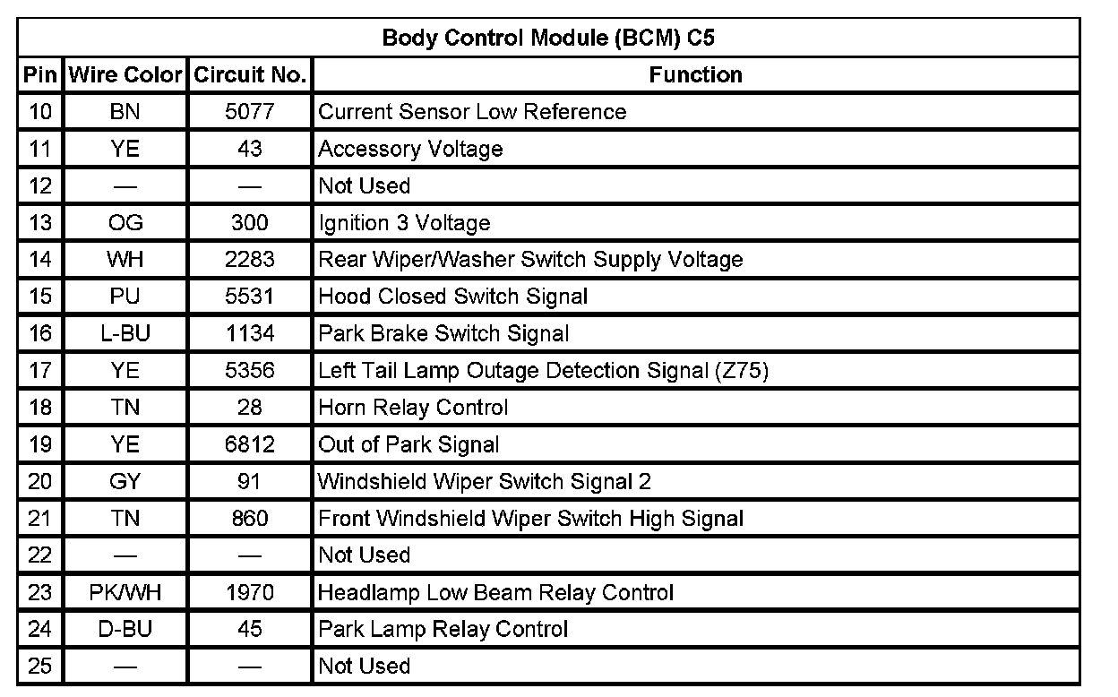 Body Control Module (BCM) C5 (Pin 10 To 25):