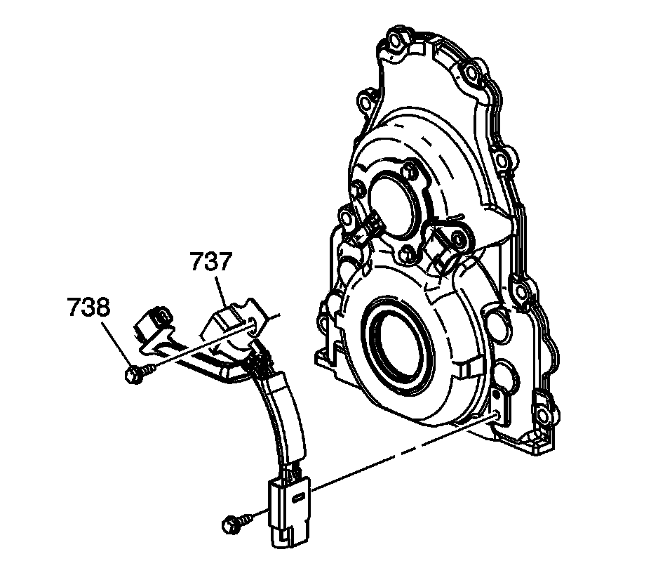 3. Remove the 3 CMP sensor wire harness bolts (738).