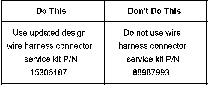 A new connector service repair kit is now available, P/N 15306187, that is an updated design. This new kit should be used whenever the speed sensor wire harness connector requires replacement.