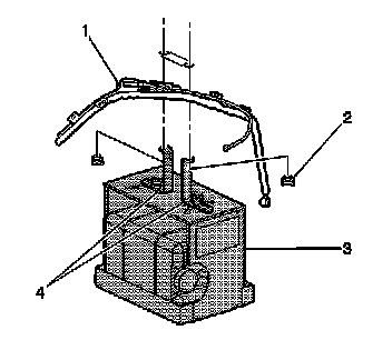 Connect the inflator module (1) to the adapter (2) on the SIR deployment harness (3).