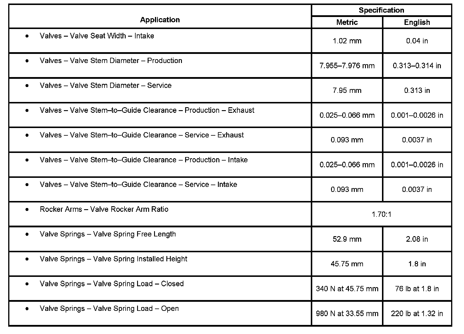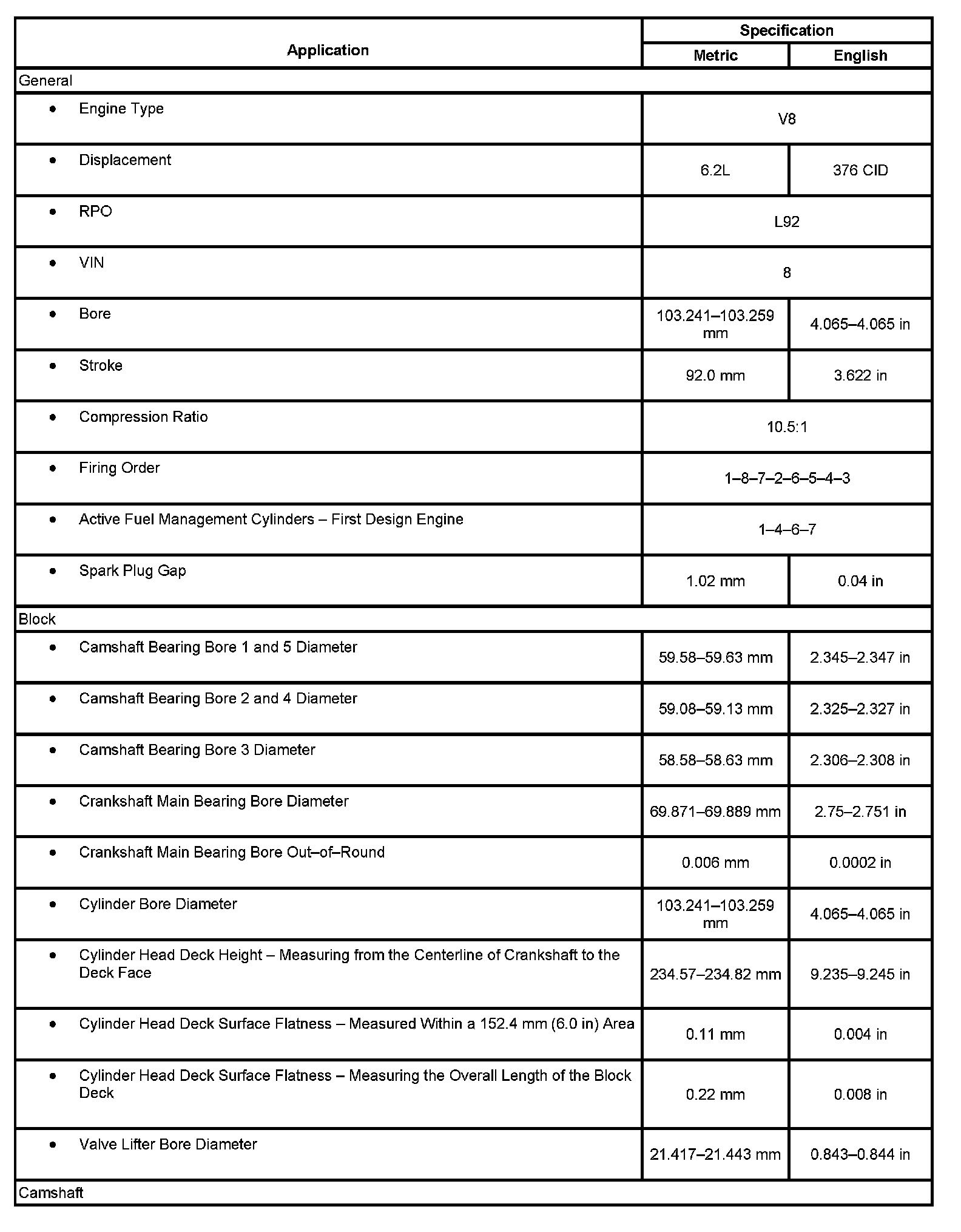 Engine Mechanical Specifications (RPO L92 VIN 8)