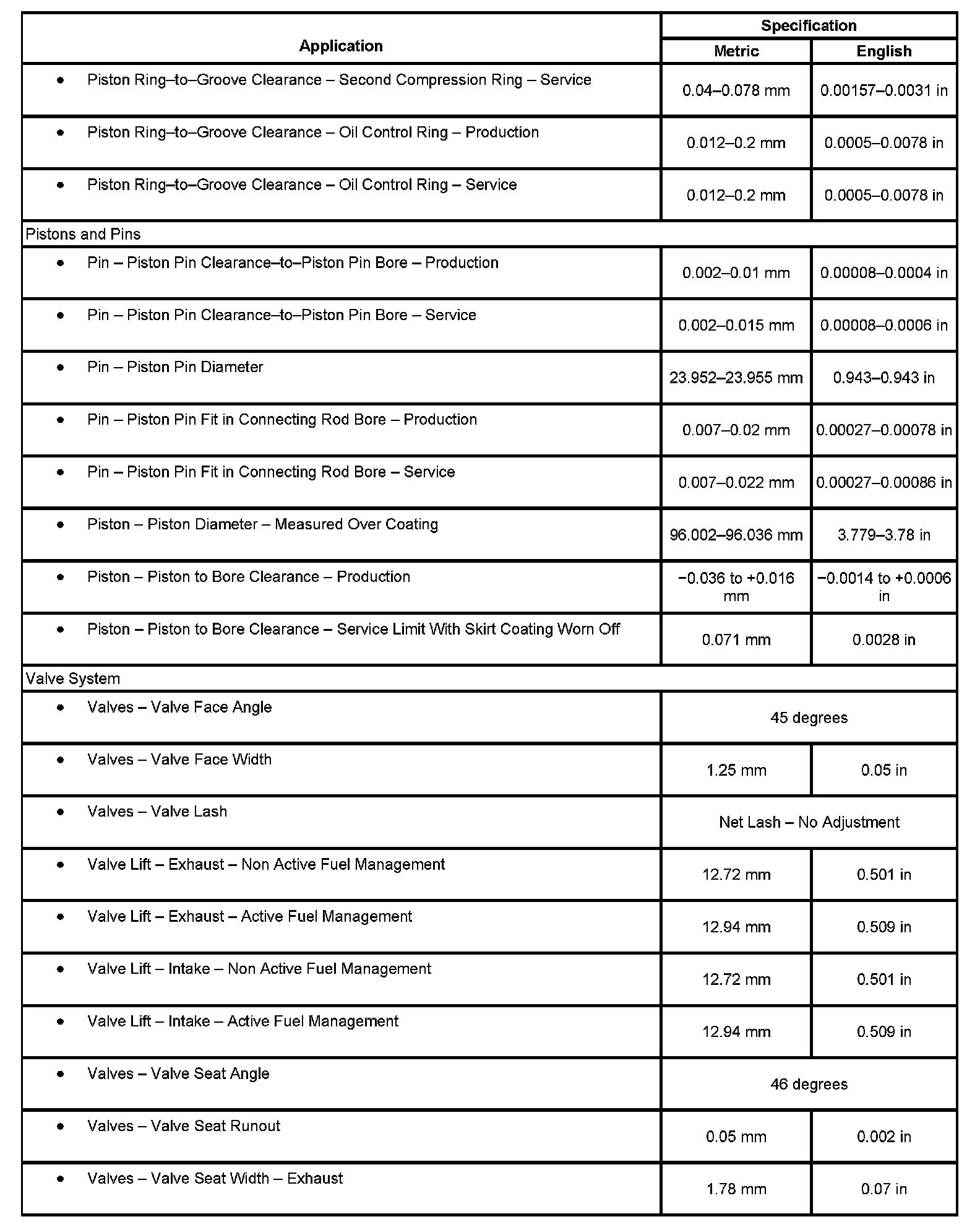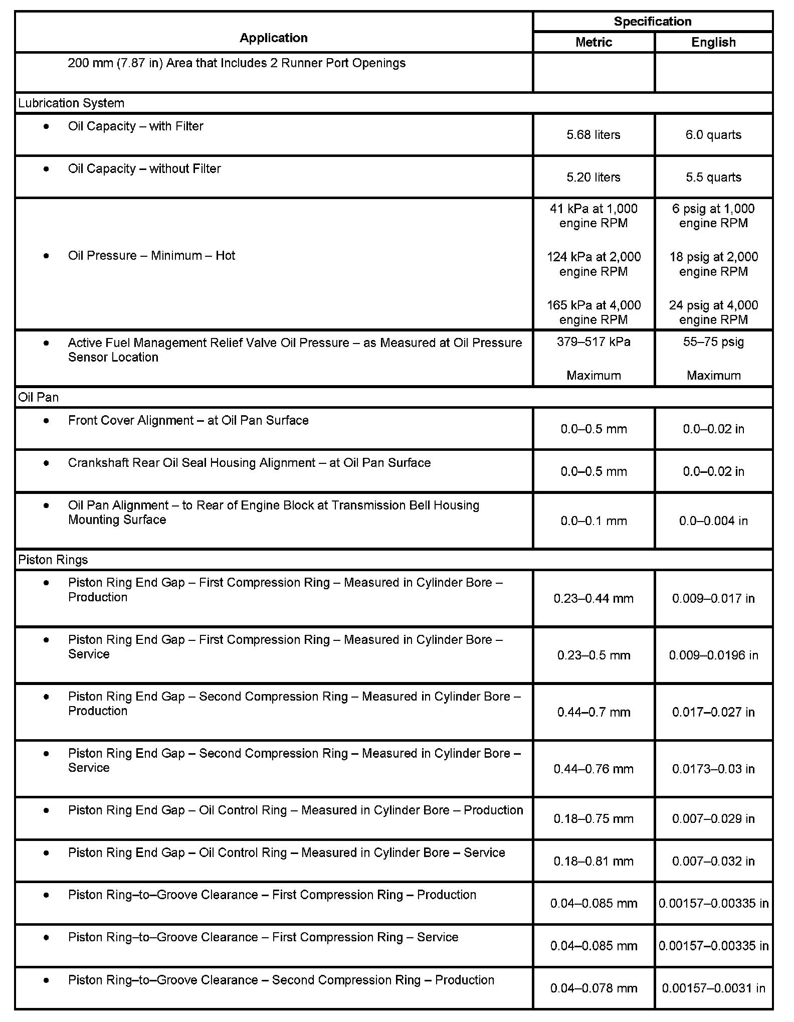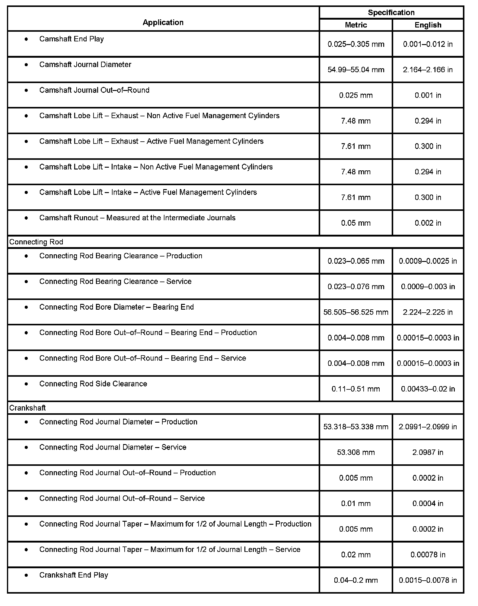 Home >> Cadillac >> 2007 >> Escalade AWD V8-6.2L >> Repair and Diagnosis >> Specifications >> Mechanical Specifications >> Engine >> System Specifications >> Engine General Specifications & Service Limits