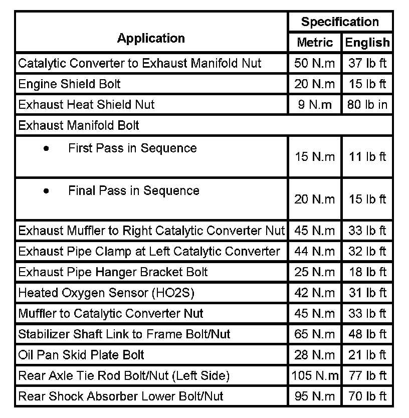 Fastener Tightening Specifications: