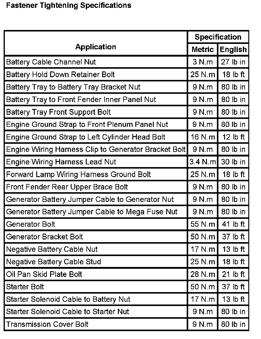 Fastener Tightening Specifications: